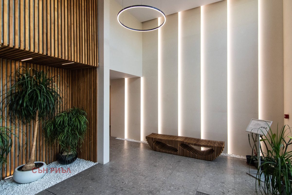 Имотът се отличава със стилен интериор, висококачествени материали и отлично поддържани общи части. Пространството е функционално организирано, с усещане за светлина и комфорт, подходящо за взискателни клиенти.