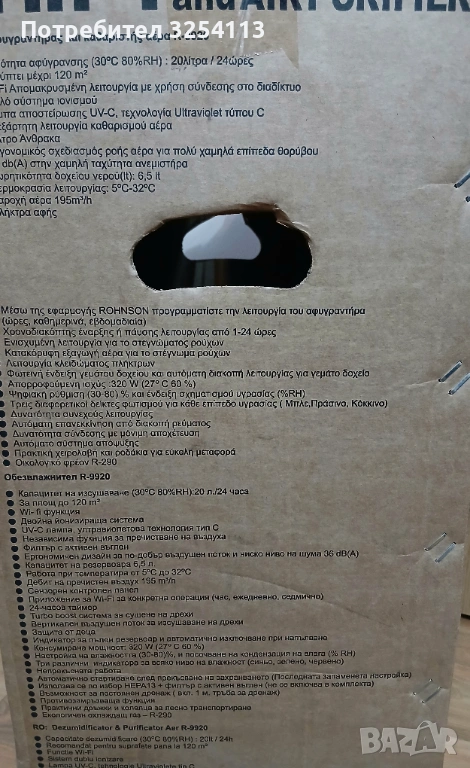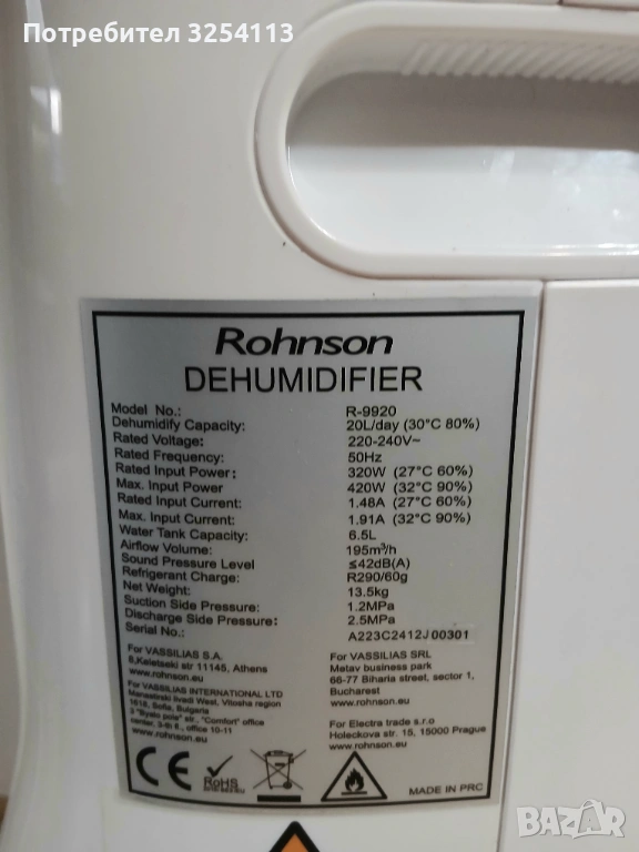 Пречиствател за въздух ROHNSON Dehumidifier → Обява 53763373
