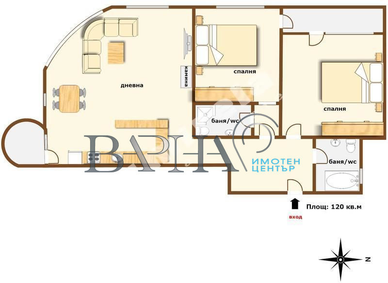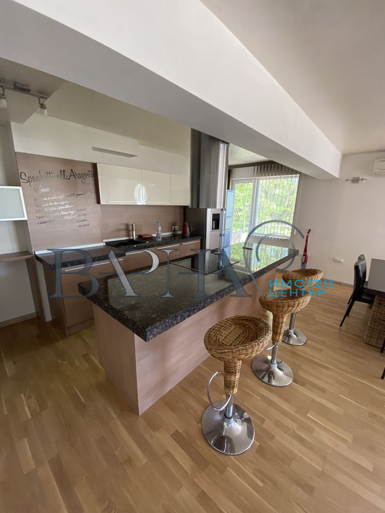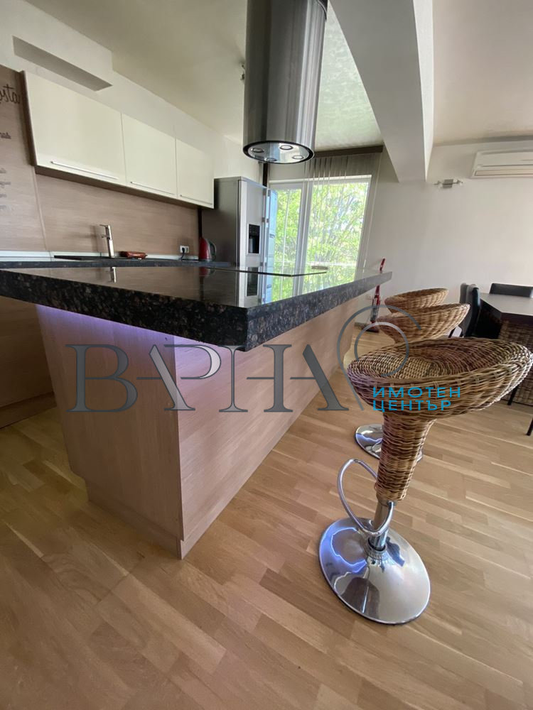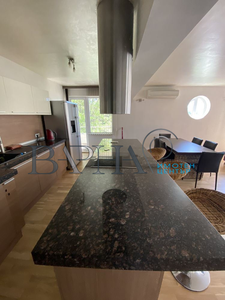 'Имотен център Варна' представя на Вашето внимание едно от малкото ни предложения изпипани до последния детайл! Тристаен апартамент в квартал Бриз в непосредствена близост до главния път, но същевременно на тиха и спокойна улица! В близост се намират големи хранителни магазини, Алея първа и Морска градина са на 5 минути разстояние! На среден етаж, на площ от 130кв.м. са разположени огромна светла дневна, кухненски бокс тип 'остров', родителска спалня и детска спалня, като всяка една спалня е с баня с тоалетна, две тераси и входно антре! Жилището е обзаведено с висок клас електроуреди като хладилник с фризер, вградени фурна, котлони, миялна, абсорбатор, пералня, три климатика Daikin, камина! В наемната цена е включено и голямо паркомясто в подземен паркинг! Не се колебайте, а ни потърсете! Огледи са възможни по всяко време! За повече информация, консултация, оглед и други предложения се обадете на посочения телефонен номер!