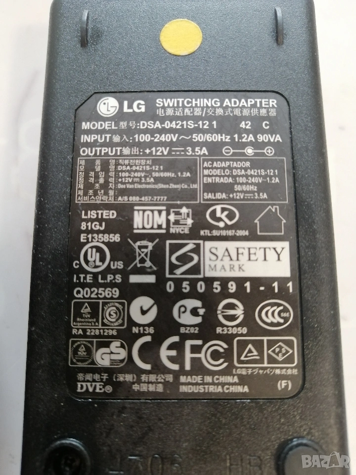 Захранващ Адаптер LG DSA-0421S-12 12V/3.5A → Обява 53763504