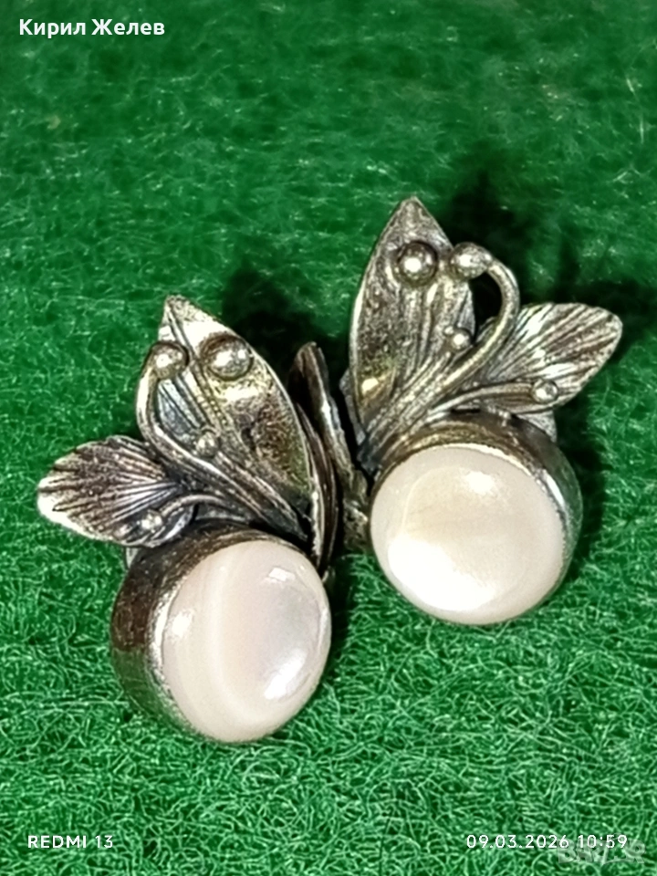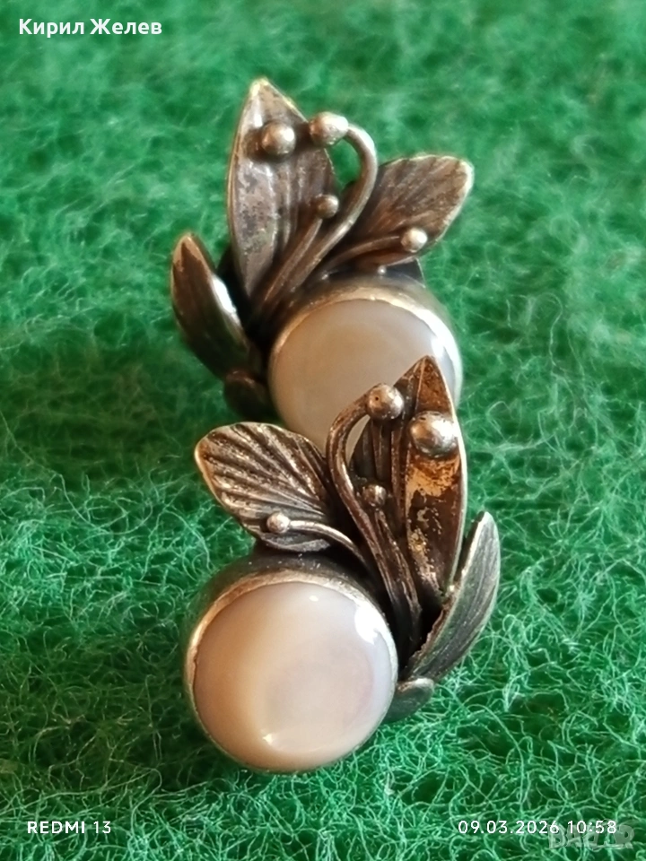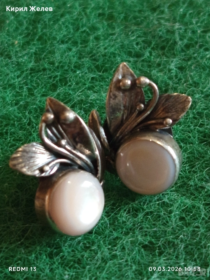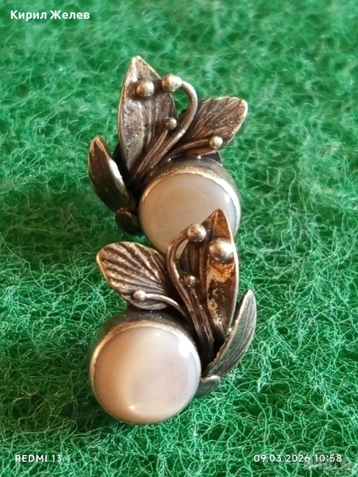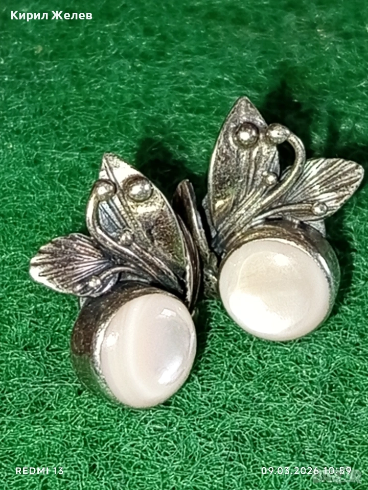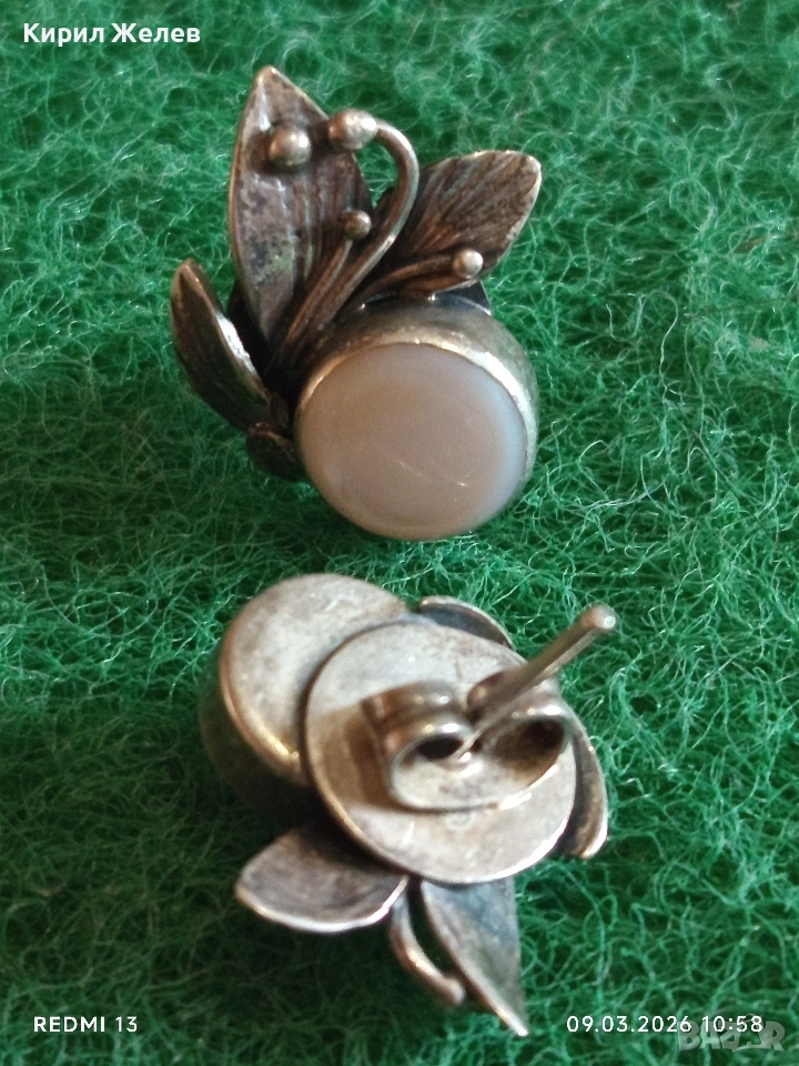 Винтидж сребърни обеци флорален мотив с инкростация на СЕДЕФ перфектни 44591