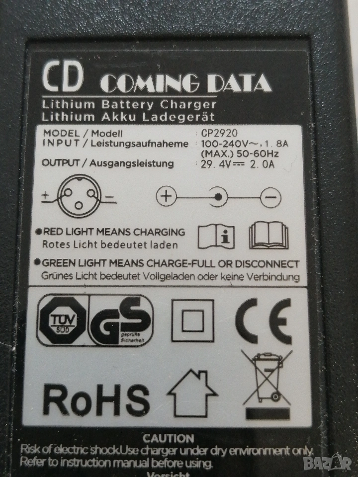 Зарядно за Li-ion батерии 29.4V 2A, снимка 1 - Друга електроника - 53763961 Зарядно за Li-ion батерии 29.4V 2A, снимка 2 - Друга електроника - 53763961 Зарядно за Li-ion батерии 29.4V 2A, снимка 3 - Друга електроника - 53763961 1/3