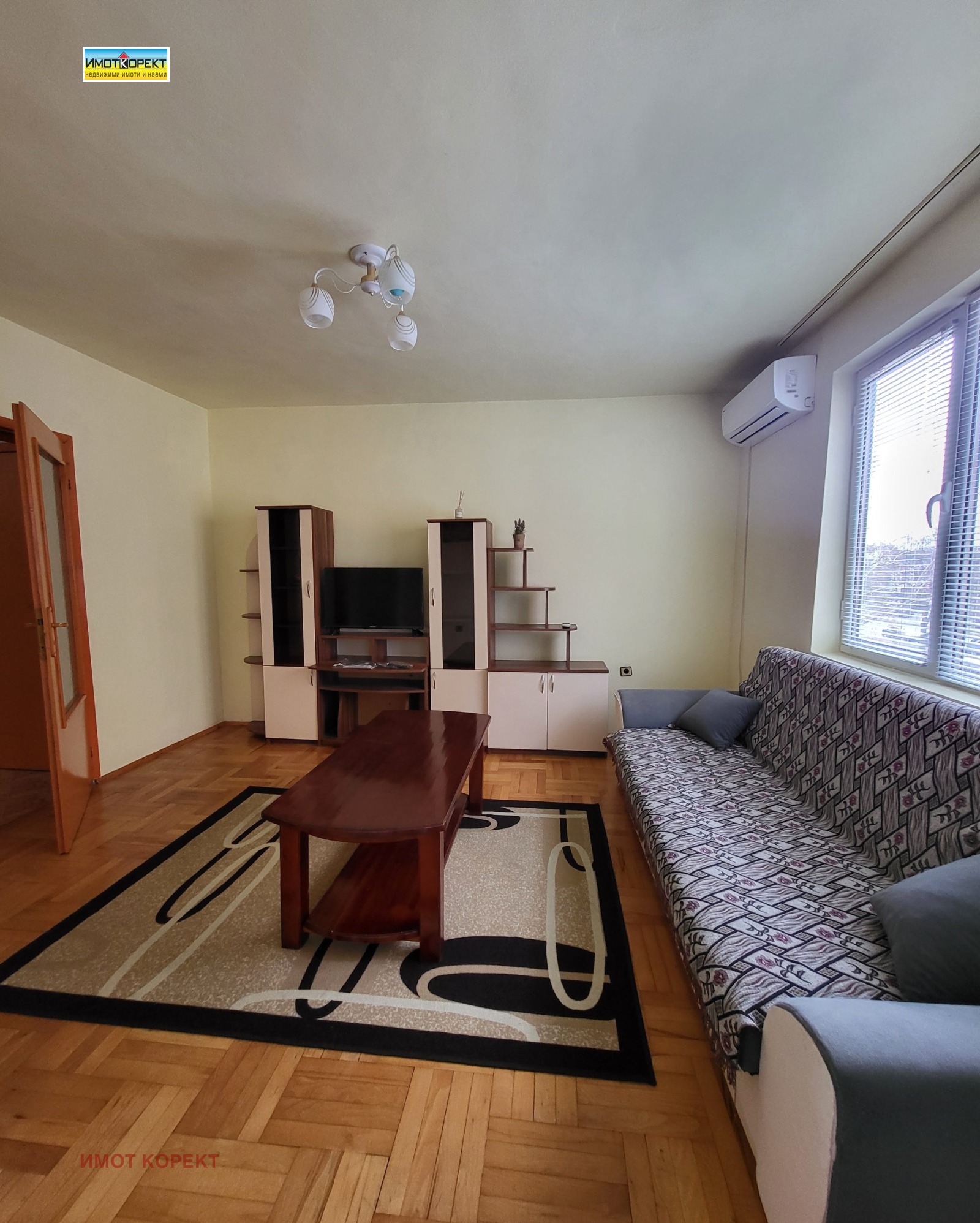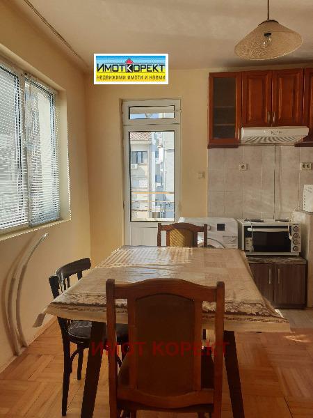 АГЕНЦИЯ 'ИМОТ КОРЕКТ' ВИ ПРЕДЛАГА ДА НАЕМЕТЕ ЧУДЕСНО ТРИСТАЙНО ЖИЛИЩЕ, СЪСТОЯЩО СЕ ОТ ХОЛ, ОТДЕЛНО КУХНЯ С ТРАПЕЗАРИЯ, ДВЕ СПАЛНИ, ТОАЛЕТНА, ОТДЕЛНО БАНЯ С ТОАЛЕТНА, КОРИДОР И ГОЛЯМА ТЕРАСА. ОБЗАВЕЖДАНЕТО ВКЛЮЧВА - СЕКЦИЯ, ДИВАН, ТЕЛЕВИЗОР, ТРАПЕЗНА МАСА, СПАЛНЯ, ДВЕ ЛЕГЛА, ГАРДЕРОБИ, КУХНЕНСКИ ШКАФОВЕ, ХЛАДИЛНИК, ГОТВАРСКА ПЕЧКА, ПЕРАЛНЯ, МИКРОВЪЛНОВА И КЛИМАТИК. ИМОТА СЕ НАМИРА БЛИЗО ДО УЧИЛИЩА, ДЕТСКИ ГРАДИНИ И ГОЛЯМ ХРАНИТЕЛЕН МАГАЗИН, СВОБОДНА ЗОНА ЗА ПАРКИРАНЕ.