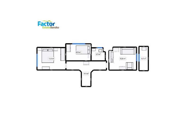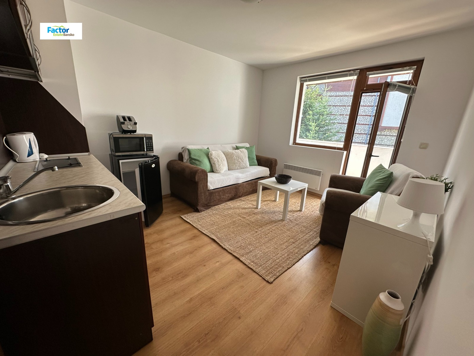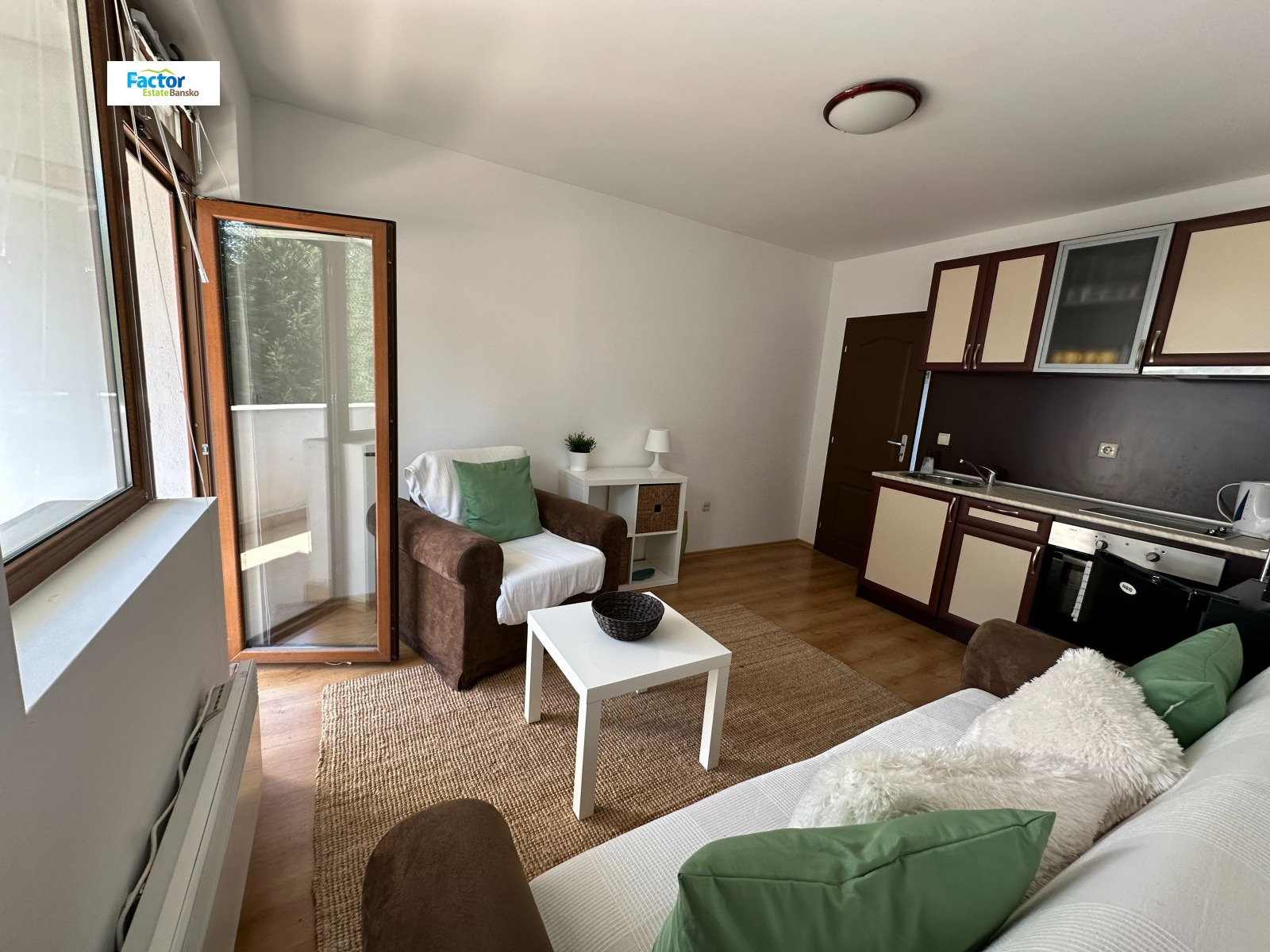 Фактор Истейт Банско предлага за продажба двуспален апартамент с балкон в жилищна сграда в кв. Глазне, на пешеходно разстояние от кабинковия лифт и стария град на Банско.