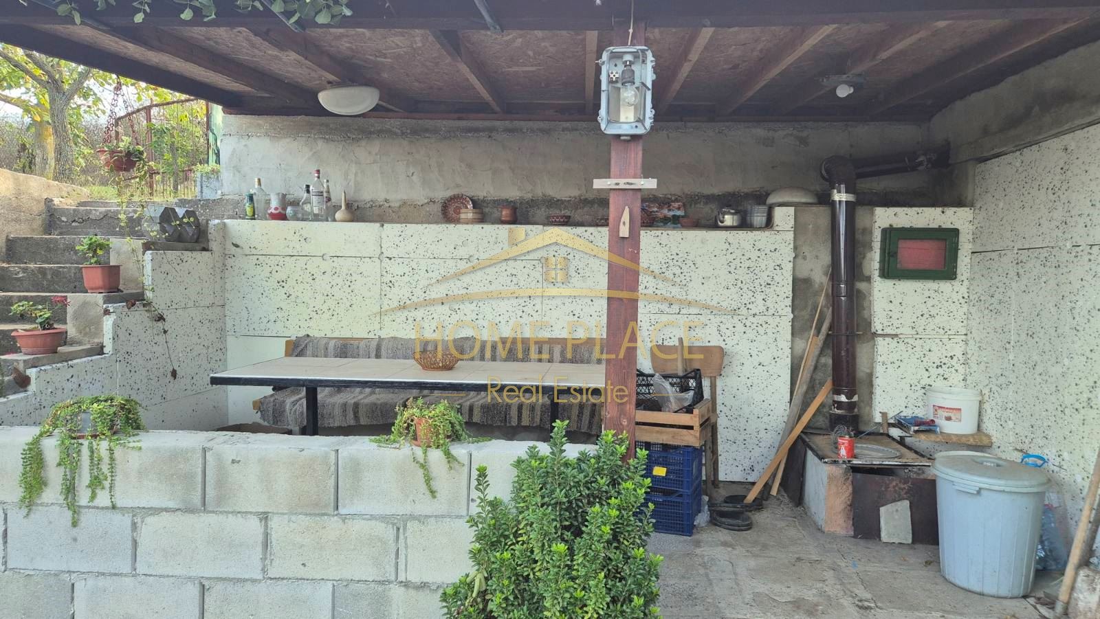Агенция 'Home Place' продава 700 кв.м. дворно място с постройка тип 'Бунгало' в м-т Лазур, Крушови градини. Имотът е разположен в землището на с.Константиново, с партида за електричество и собствен водоизточник. Дворът е с правилна форма, добре поддържан. Има изградени допълнителни помощни постройки.