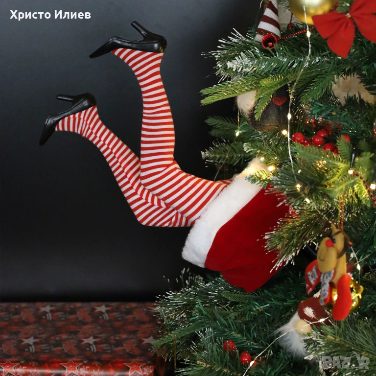 Декорация за коледна елха подвижни крака на дядо коледа или елф жена → Обява 53764354