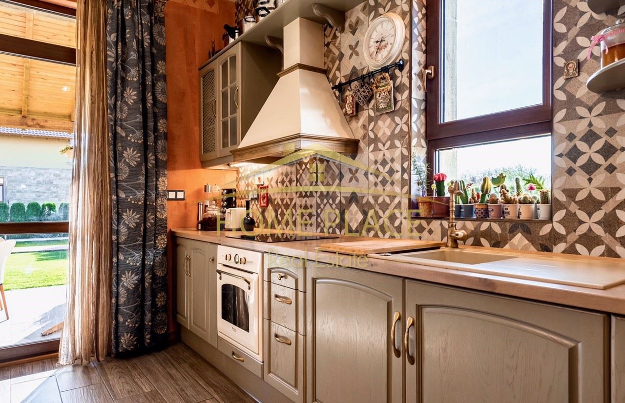 Входът на къщата ви води през великолепно антре, обзаведено с класически тоскански елементи и изискани декорации. Просторният дневен тракт се характеризира с топло осветление и стилни мебели, предоставяйки идеалното пространство за забавление и релакс. Кухненският бокс, напълно оборудван с висококачествени уреди, предлага възможност за създаване на вкусни гурме ястия.