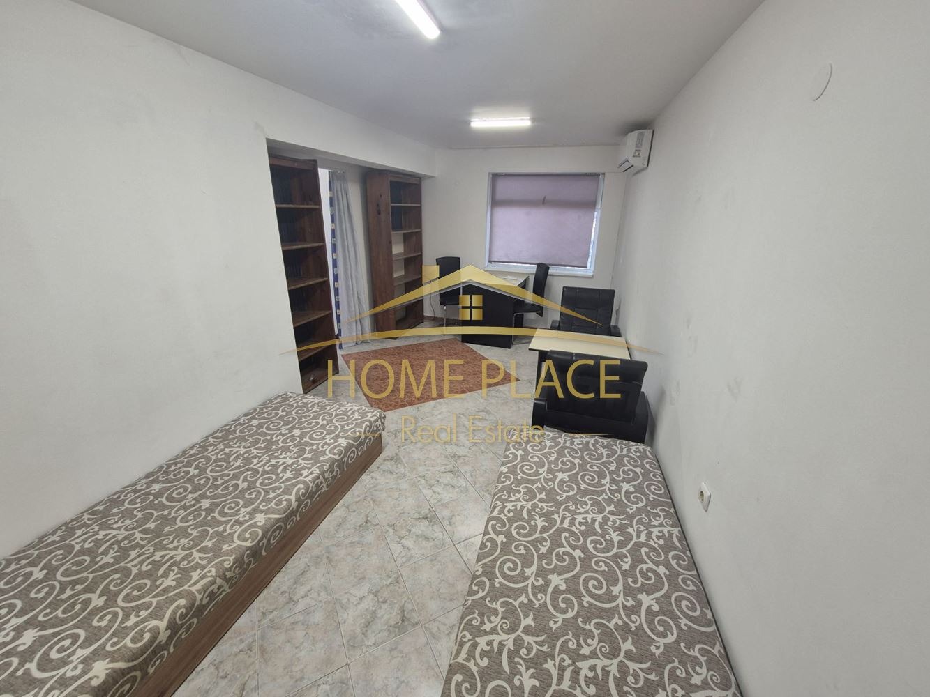 Агенция 'Home Place' продава партерно помещение със статут на магазин, който в момента е преобразуван в две самостоятелни жилищни помещения. Обезопасен е с външна ролетна щора, два нови климатика. Токът е битов.