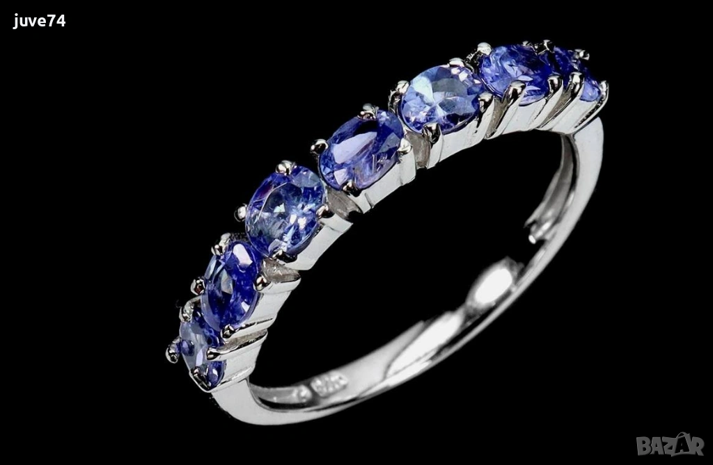 СРЕБЪРЕН ПРЪСТЕН С ЕСТЕСТВЕНИ ТАНЗАНИТИ (ТАНЗАНИЯ) → Обява 53764950