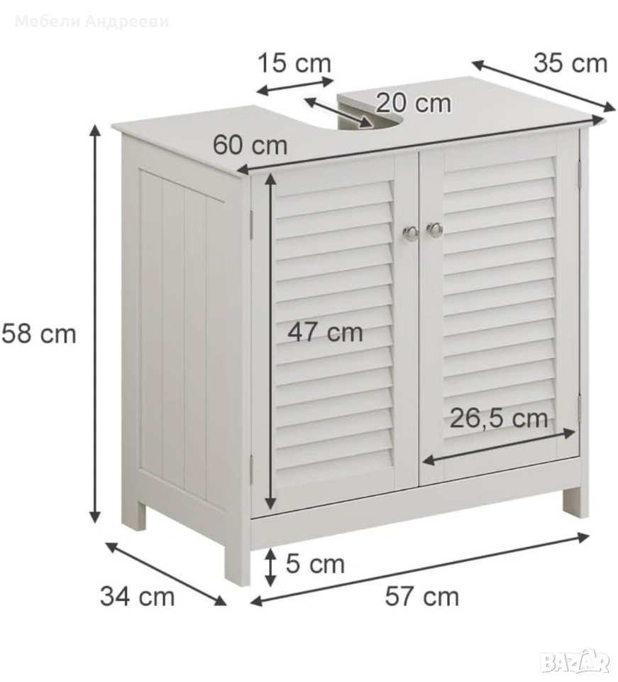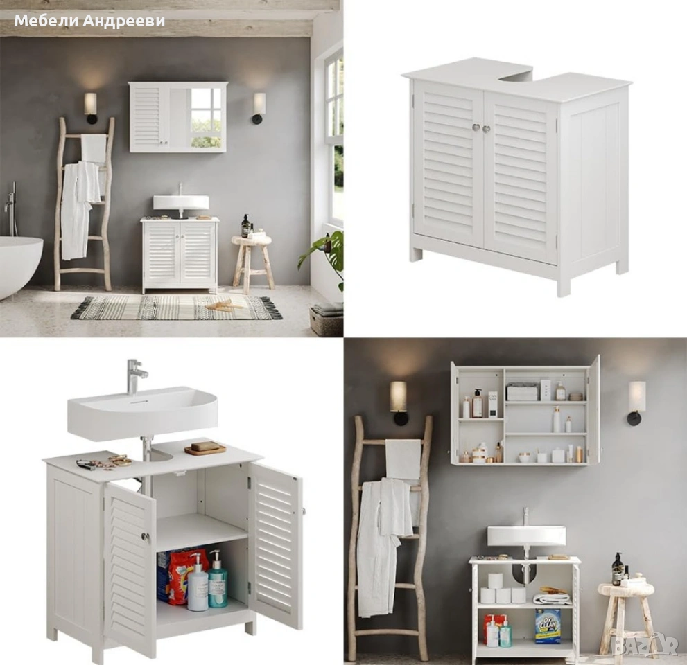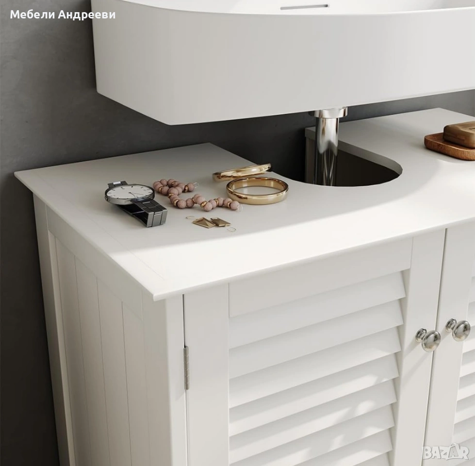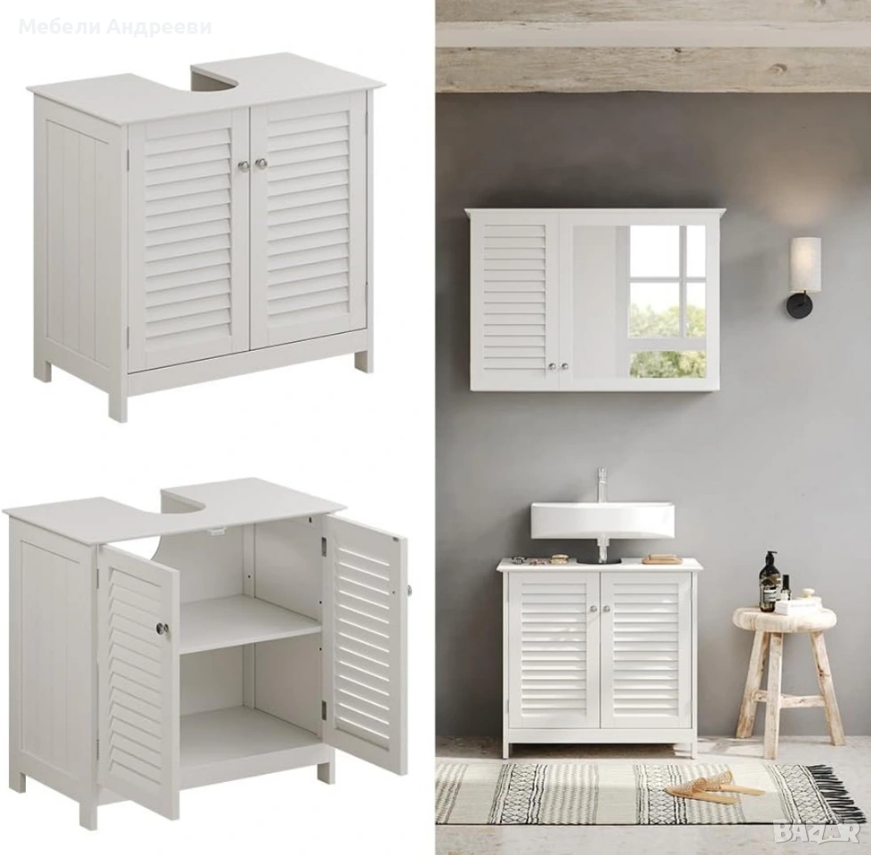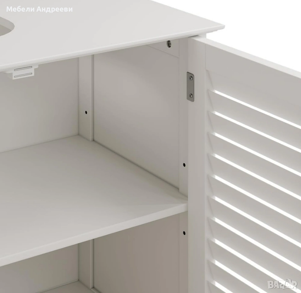 шкаф за баня, шкаф под мивка, Vicco Riad, MDF шкаф, ламелен дизайн, бял шкаф, мебели за баня, нови мебели, немски мебели, внос Германия.