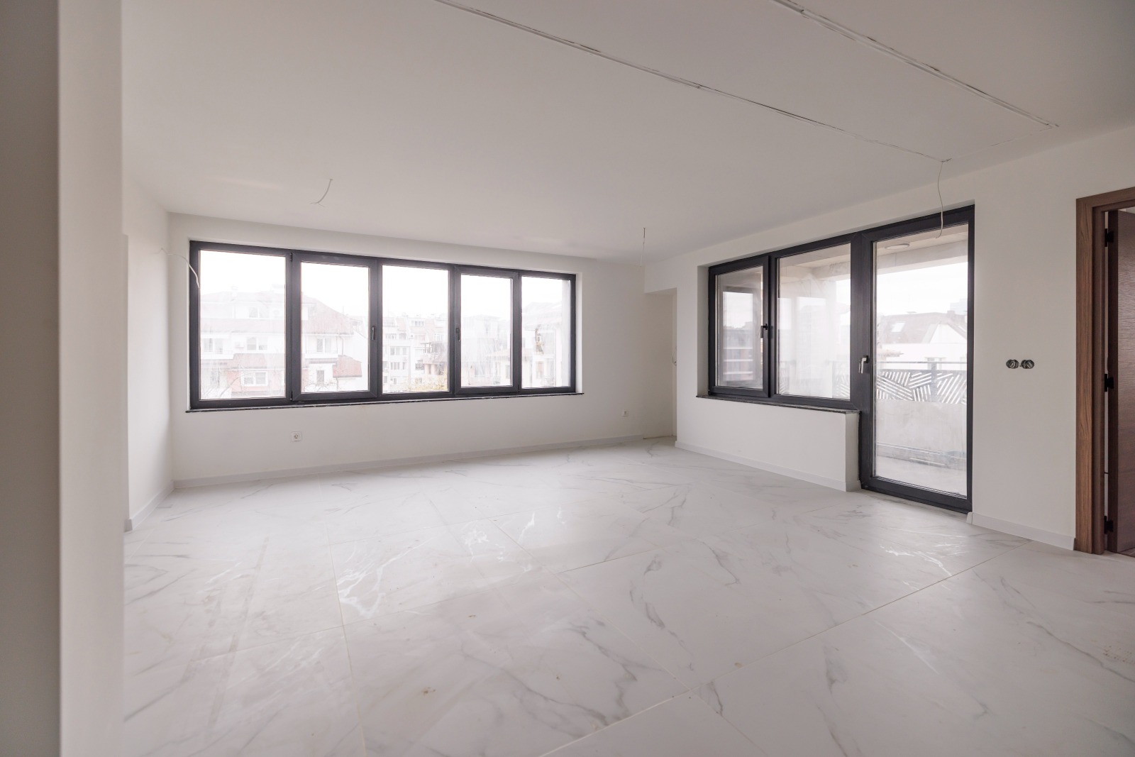Съвременни настилки, модерна дограма, подбрани текстури и завършен вид без нужда от допълнителни работи.