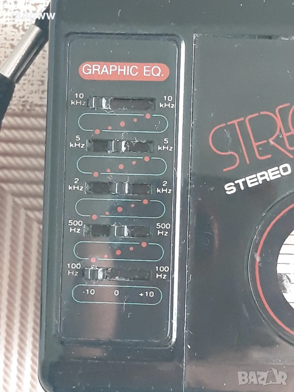 2кHz; 5кHz; 10кHz, с двe вградени високоговорителчета и изход за слушалки. АМ: 530 кHz – 1605 кHz; FM: