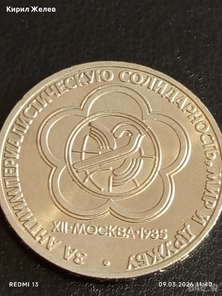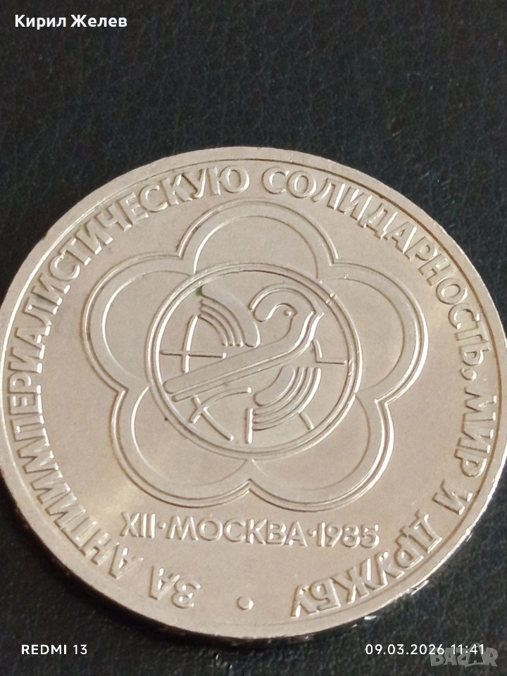 Юбилейна монета 1 рубла 1985г. СССР тема Световен фестивал на Младежта и Студенти 51942