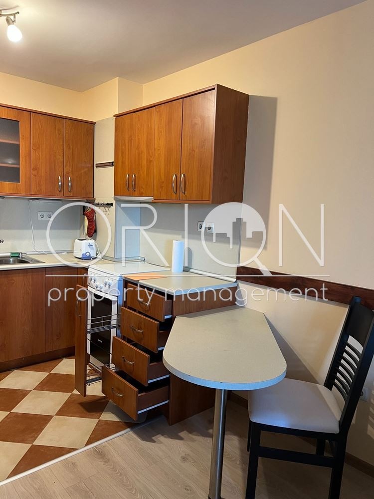 Orion Property Management има удоволствието да ви представи двустаен апартамент под наем в гр. София, жк. Младост 2. Имотът е разположен на отлична локация, на 250 метра от Българско школо и Овергаз Арена, в близост до ХИТ МАКС и метростанция Александър Теодоров-Балан , на около 10 минути пешеходно разстояние. Сградата е тухлена, с Акт 16 от 2006 г., добре поддържани общи части и асансьор. Апартаментът се намира на 6-ти етаж от 7. Жилището е напълно обзаведено и функционално разпределено, състоящо се от входно антре, баня с тоалетна, спалня и хол с кухненски бокс. Отоплението е централно, като в банята е монтиран и допълнителен 50-литров бойлер. Спалнята разполага с вграден шесткрилен гардероб и легло с размери 160х200. В хола е монтиран климатик Mitsubishi, като има изводи за втори климатик в спалнята. Към апартамента има просторна тераса с площ от 12 кв.м., затворена и остъклена с дограма и покрив от поликарбонат. Имотът се отдава под наем във вида, показан на снимките, готов за нанасяне. За информация и огледи се свържете с нас и цитирайте референтен номер:10638