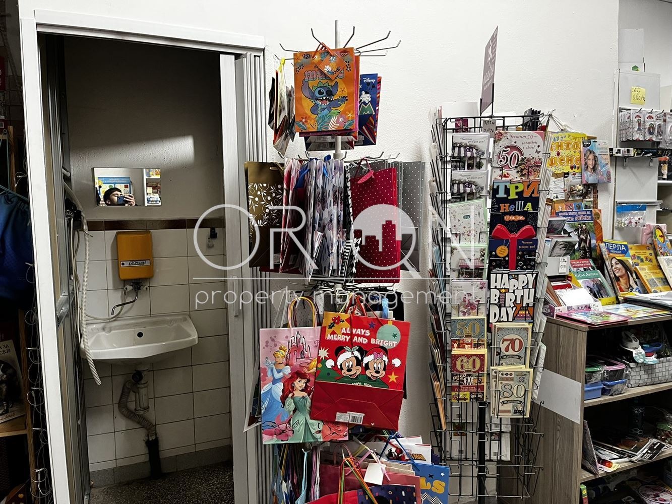 Помещението разполага със собствена тоалетна и мивка, което го прави напълно самостоятелно и функционално за различни търговски или обслужващи дейности.