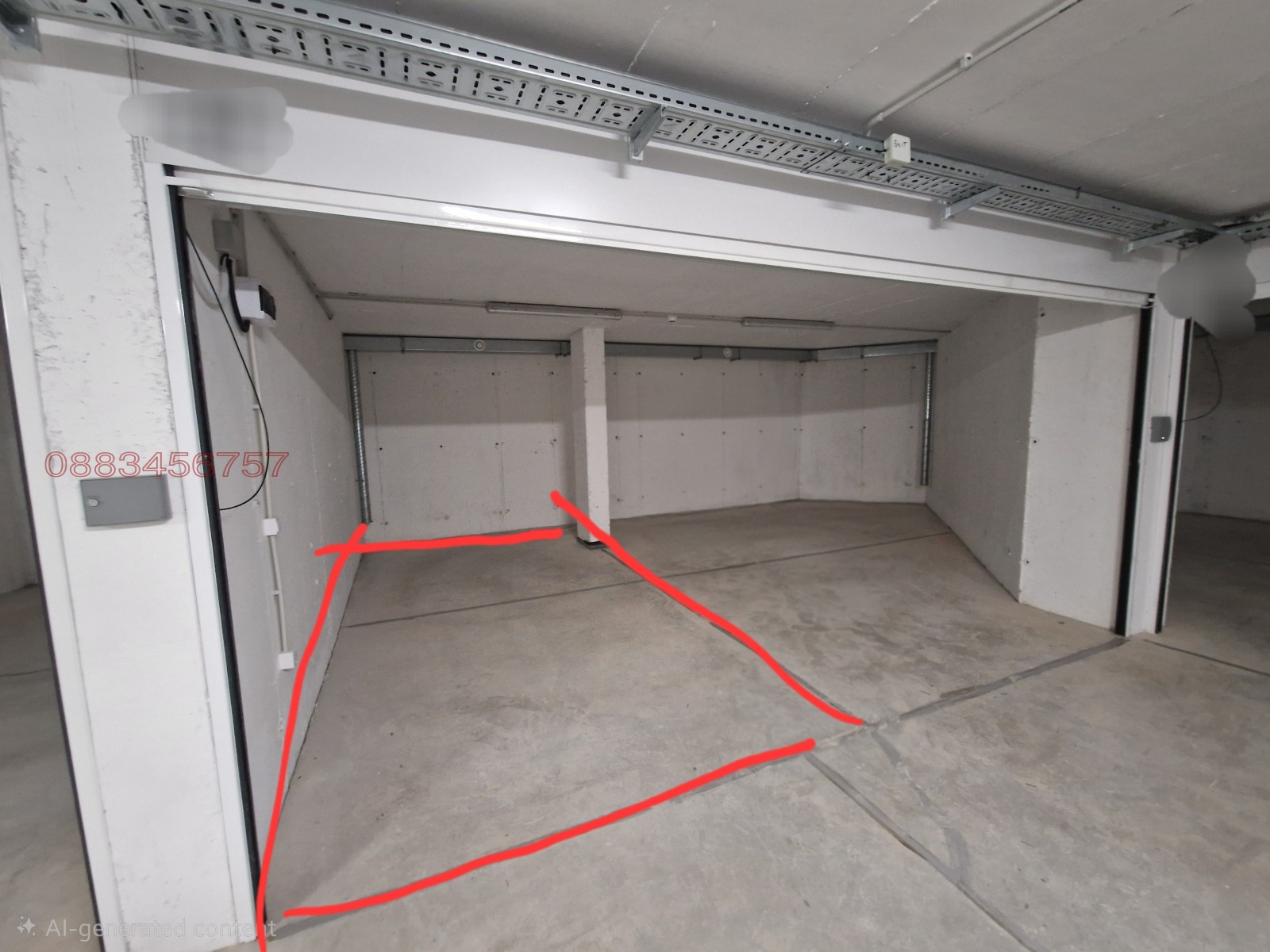 Отдава се едната страна от двоен гараж с обща голяма автоматична врата. Вътрешно гаражът е разделен на две самостоятелни части, като под наем се предлага само едната, която е с размери 2.50х5.50м