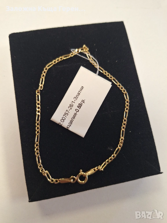 Златна гривна 0,88гр.14к, снимка 1 - Гривни - 53765510 Златна гривна 0,88гр.14к, снимка 2 - Гривни - 53765510 Златна гривна 0,88гр.14к, снимка 3 - Гривни - 53765510 1/3