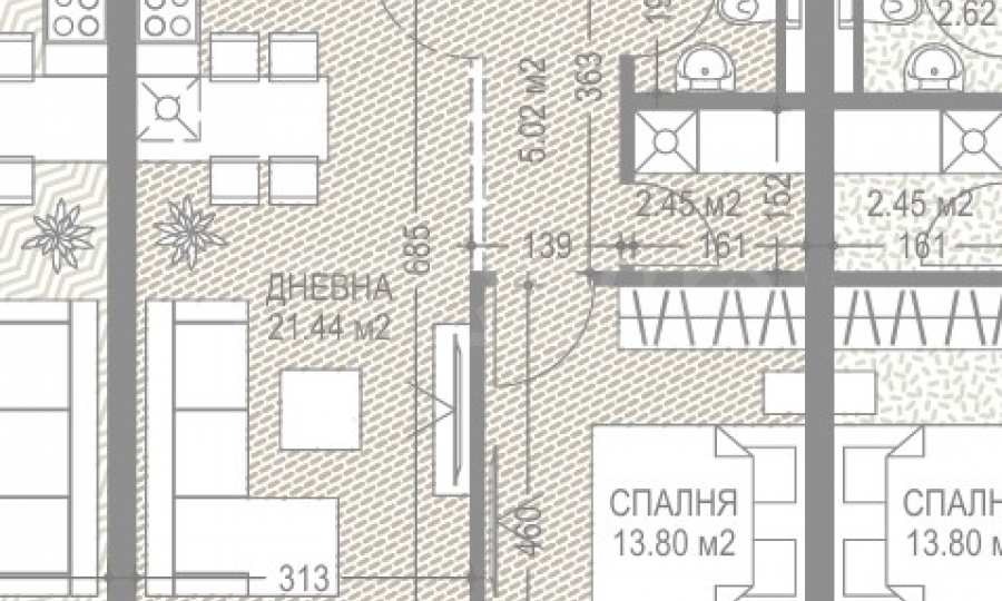 Имотът се издава в следния вид: всички инсталации в жилището са изградени и положени, в т.ч. електрическа инсталация, ВиК, тръбни разводки за отопление и климатизация на индивидуални газов котел, термопомпа или мултисплит система с фреонови климатици, според предпочитанията на купувача. Монтирани са стойки за външните тела на предварително определени за това, дискретни места по балконите, с цел запазване на външната естетика на сградата и нейната фасада. Поставени са контакти и ключове от Schneider Electric. Монтирана е италианска блиндирана входна врата Dierre.