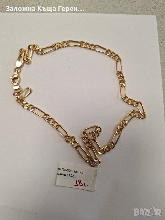 Златен синджир 11,20гр.18к, снимка 1 - Колиета, медальони, синджири - 53765844 Златен синджир 11,20гр.18к, снимка 2 - Колиета, медальони, синджири - 53765844 Златен синджир 11,20гр.18к, снимка 3 - Колиета, медальони, синджири - 53765844 1/3