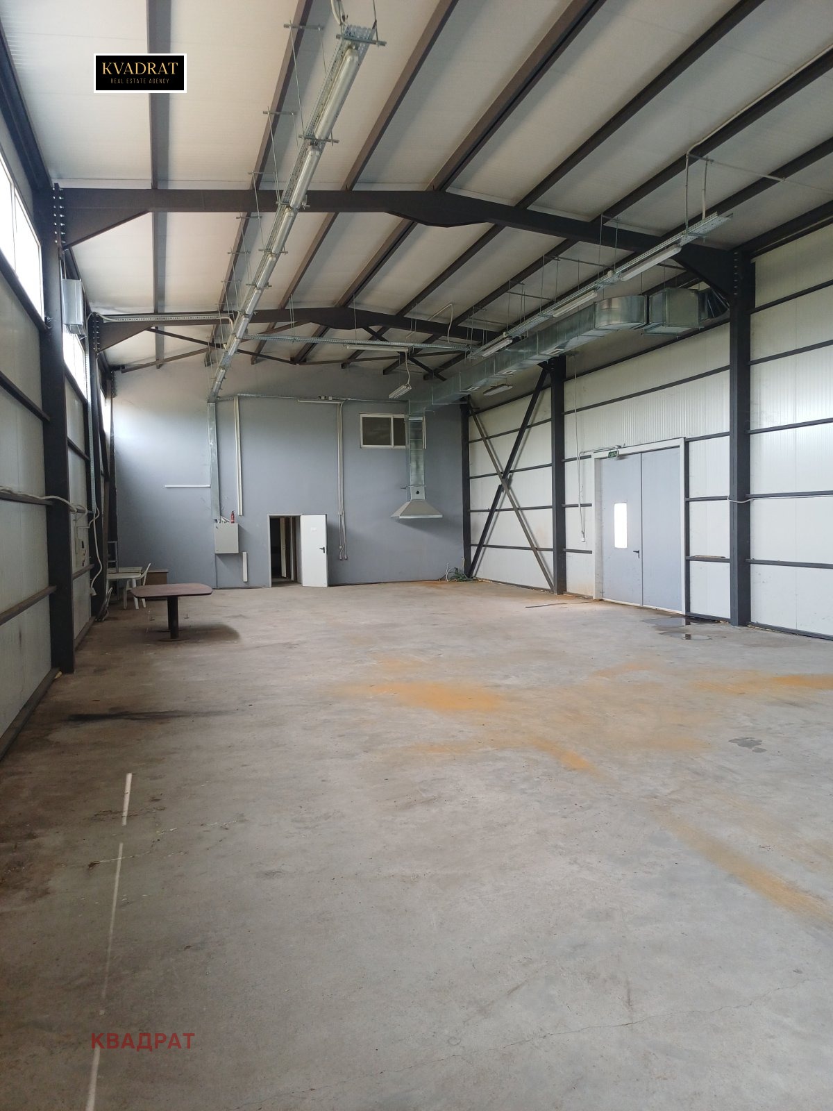 Агенция Квадрат предлага на вашето внимание склад/ производствена база в Нови Искър на ул. Стадиона, до футболният стадион. Общата площ на имота е 2063 кв.м. Складовата постройка е с площ 300 кв.м.Има възможност за дострояване на още един склад със същата площ. Височината е 5м. Има офисна част от 120 кв.м. Имотът разполага със собствен сондаж. До сега е ползван за производство. Изграден е от сандвич панели. Има 3 входа. Целият имот е ограден и може да се ползва и външната част за всякакви нужди.Дългосрочен наем. За повече информация и огледи се свържете с нас. Агенцията разполага с ключ.