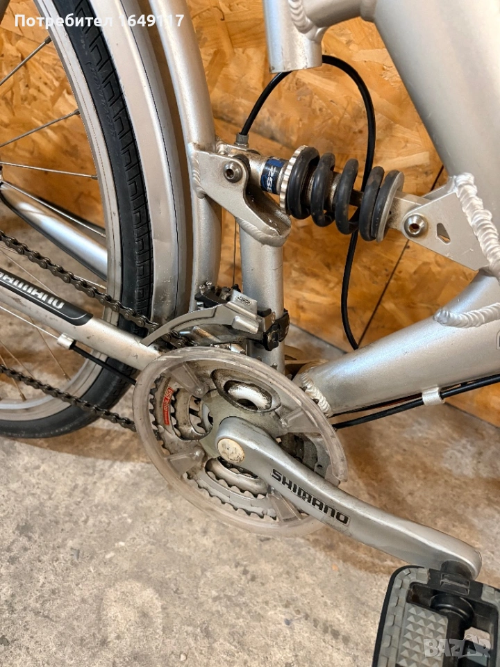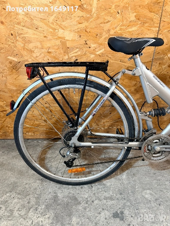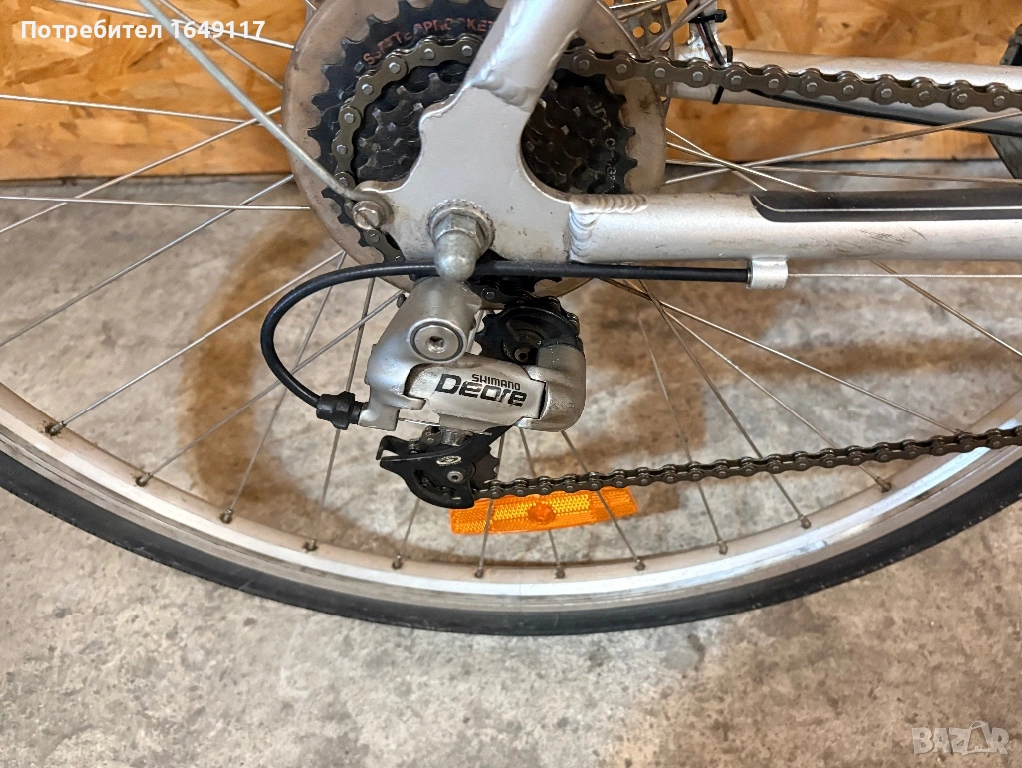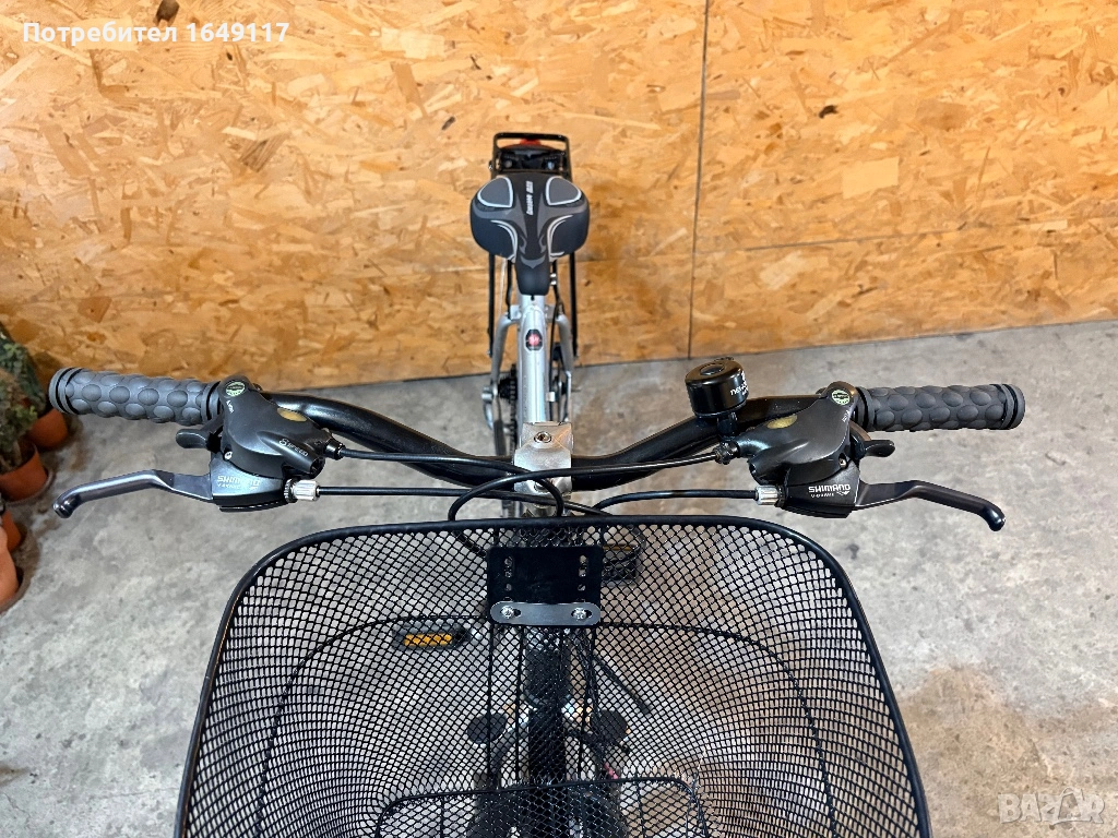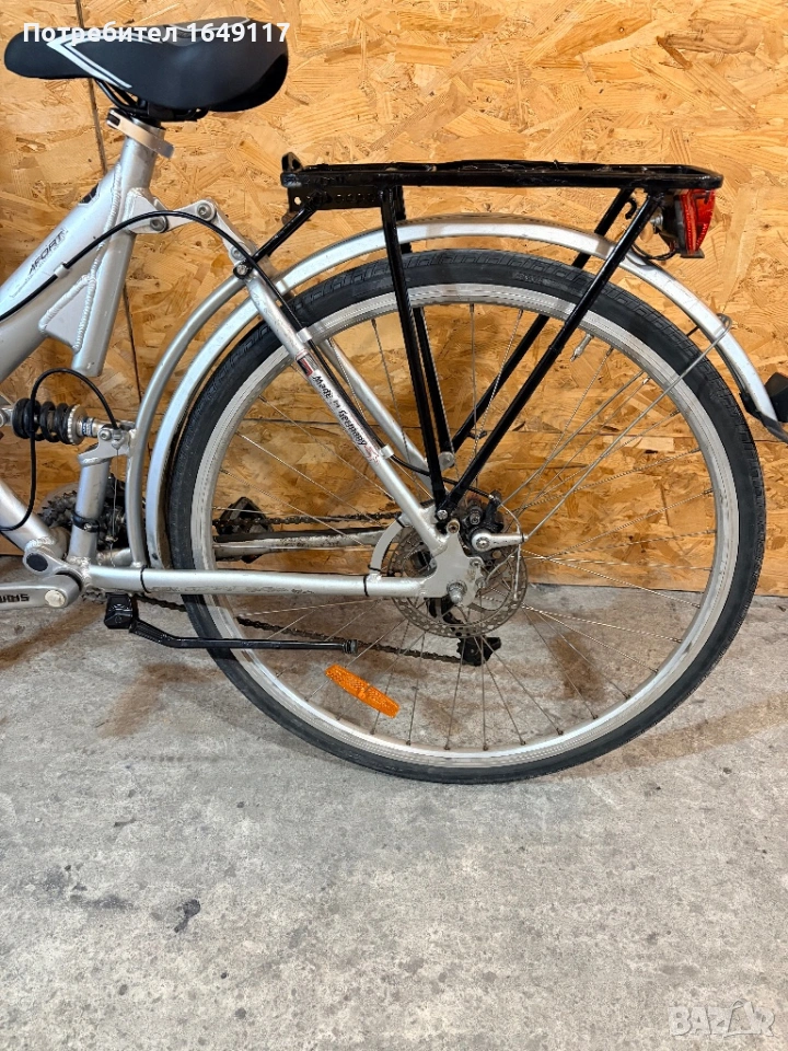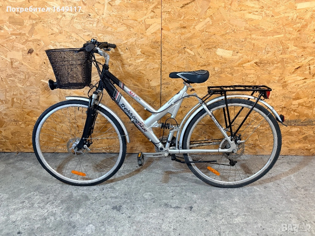 Продавам 28цола, малко употребяван, дамски-градски велосипед Trekking Star ALU line[made in Germany]. Олекотена, алуминиева рамка - 52см. Външни скорости Shimano Deore - 24бр. c комбинирани палцови команди Shimano. Предна, алуминиева-амортисьорна вилка. Централен амортисьор с регулиране на твърдостта. Алуминиеви курбели Shimano. Спортна ергономична седалка. Алуминиеви, двойностенни капли[предна капла с динамо главина]. Гуми с усилен градски профил. Предна и задна дискови спирачки ProMax. Кормило с алуминиева, раздвижна лапа. Заден багажник с натоварване до 25г + кошница за багаж отпред. Олекотени калници. Алуминиева стойка. Халогенен фар и габаритна светлина, светлоотразители, звънец.