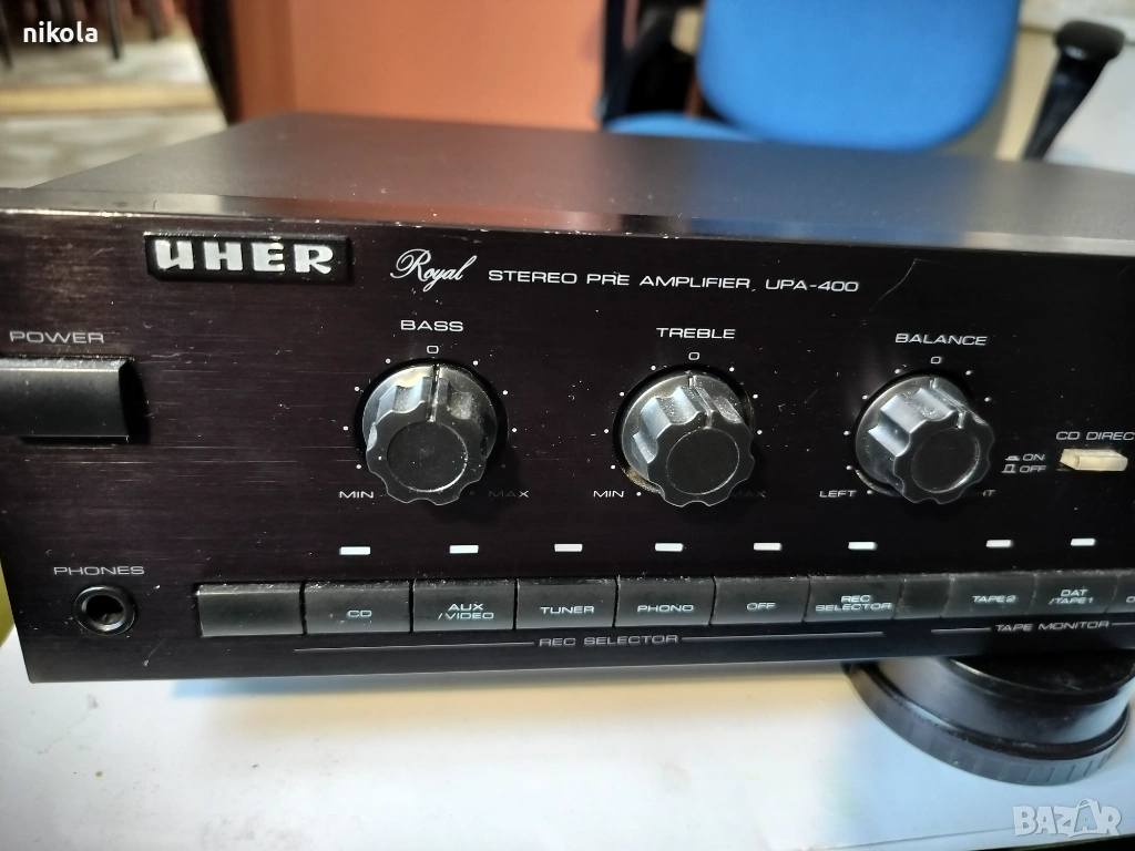 Много добър предусилвател на Германската фирма Uher referens 1 UPA400 известен и с названия като търговски на Хан Тор Паладиум и др. Притежава всички необходими входове и изходи необходими за висок клас апаратура: грамофонни с Риа коректори за различни грамофонни дози. така също вход тунер сд магнитофонни 2 бр и дрДанните ги има в нета.Показвам и няколко снимки в комбинация със стапало на същата фирма. Никола 0886704976