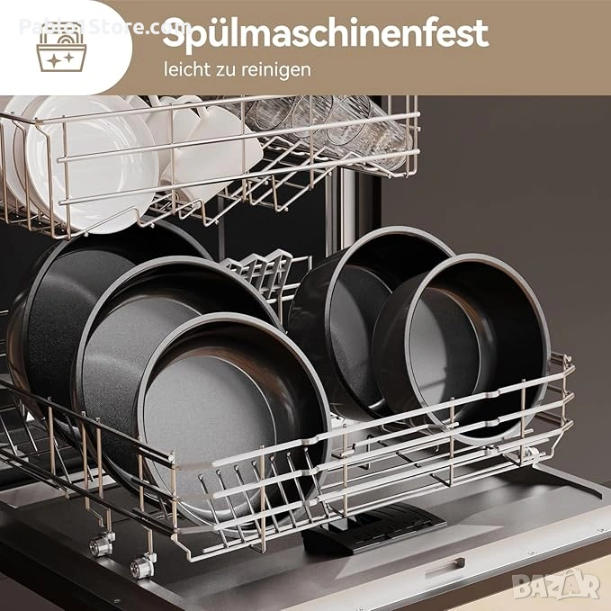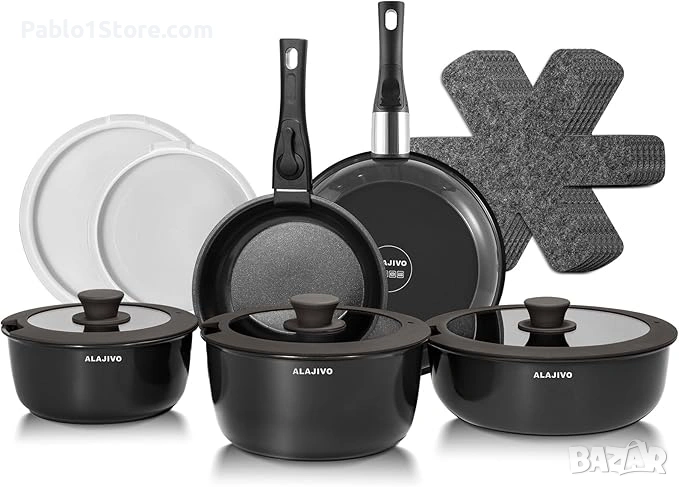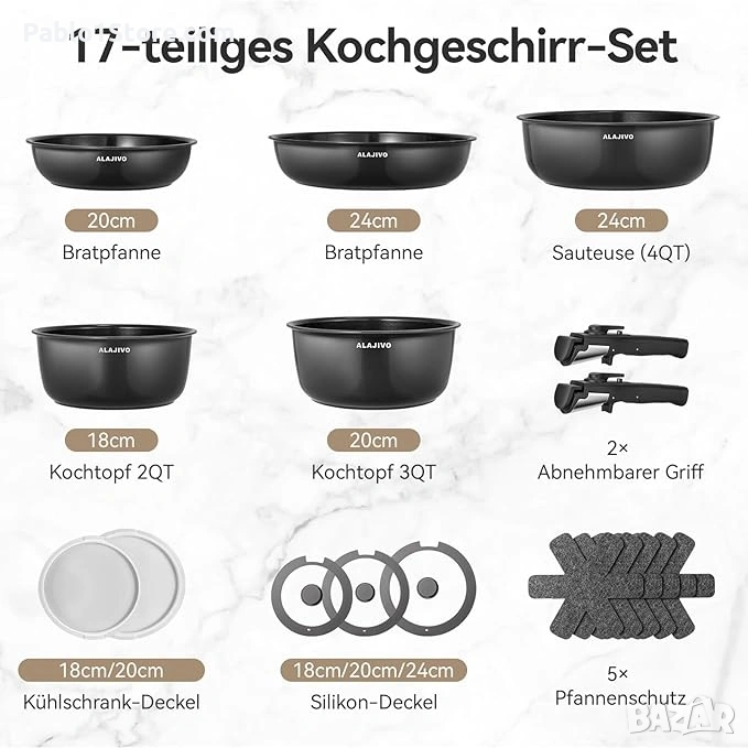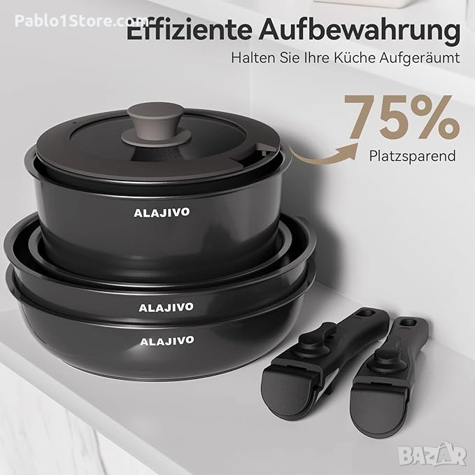 Kомплект тенджери с подвижна дръжка,Комплект тенджери от 17 части с керамично незалепващо покритие, → Обява 53766192