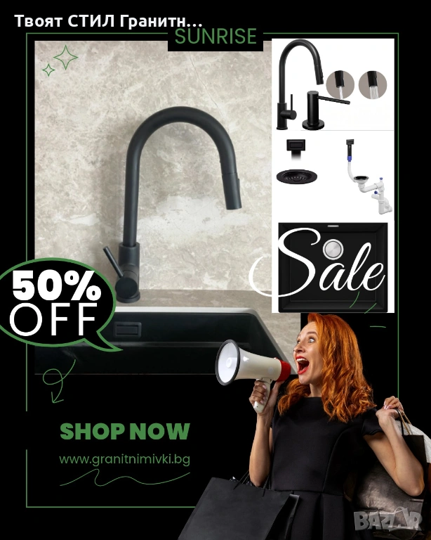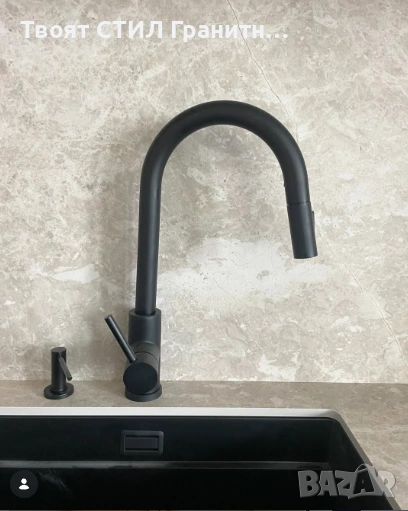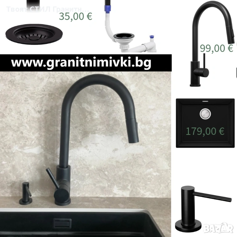 кухненска мивка, гранитна мивка, мивка за кухня, черна мивка, мивка под плот, кухненски смесител, смесител за кухня, черен смесител, кухненски аксесоари, дозатор за кухня, сифон за мивка, модерна кухня, дизайнерска кухня.