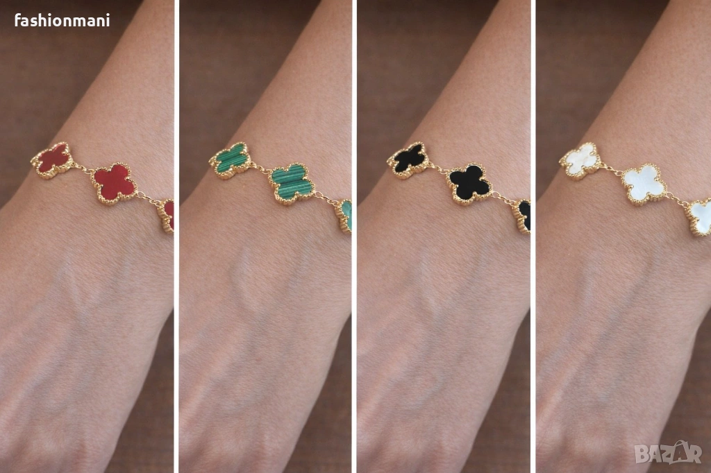 Не се влияет от намокряне и наподобяват истинско златно и сребърно бижу. Ще бъдете винаги в центъра на вниматието. Модели на гривните на Van Cleef. Гривните са с дължина 18см. и имат удължение 4см.
