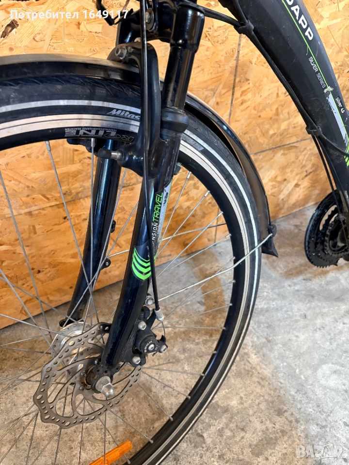 Велосипеда е внесен от Германия. В много добро цялостно състояние. Регулиран и напълно готов за употреба. Подходящ за човек с ръст от 160см до 180см.