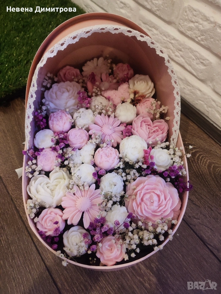 Букет от соеви свещи в кутия бебешка количка → Обява 53766473