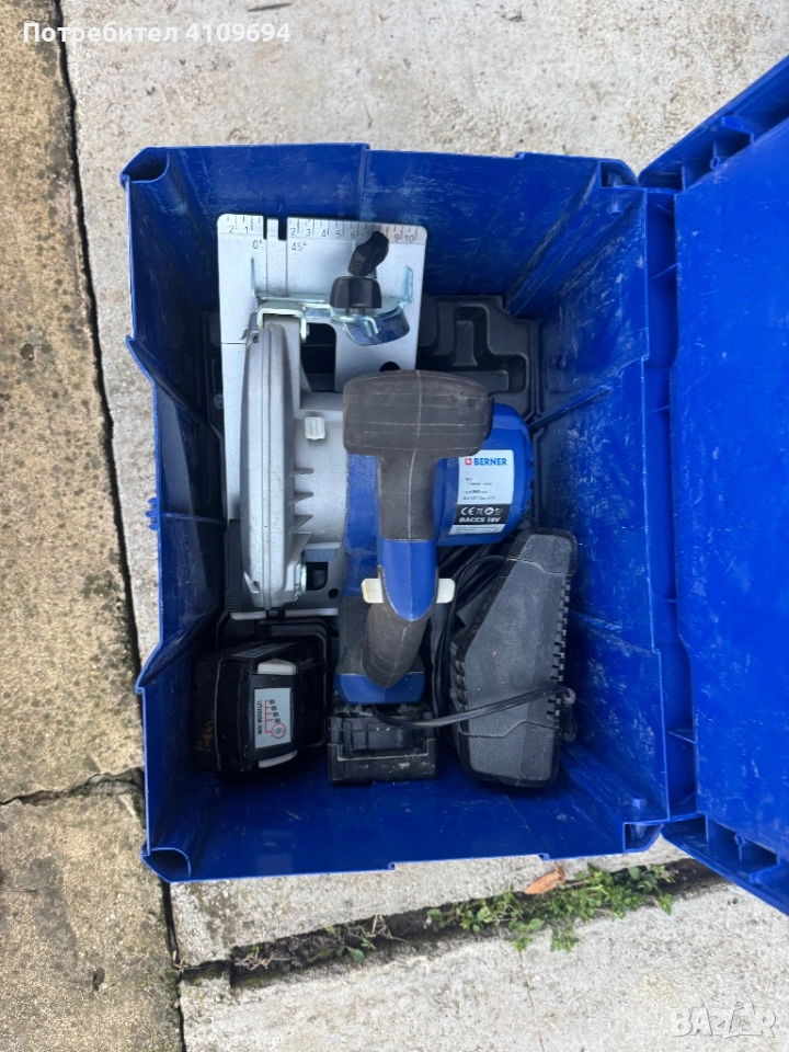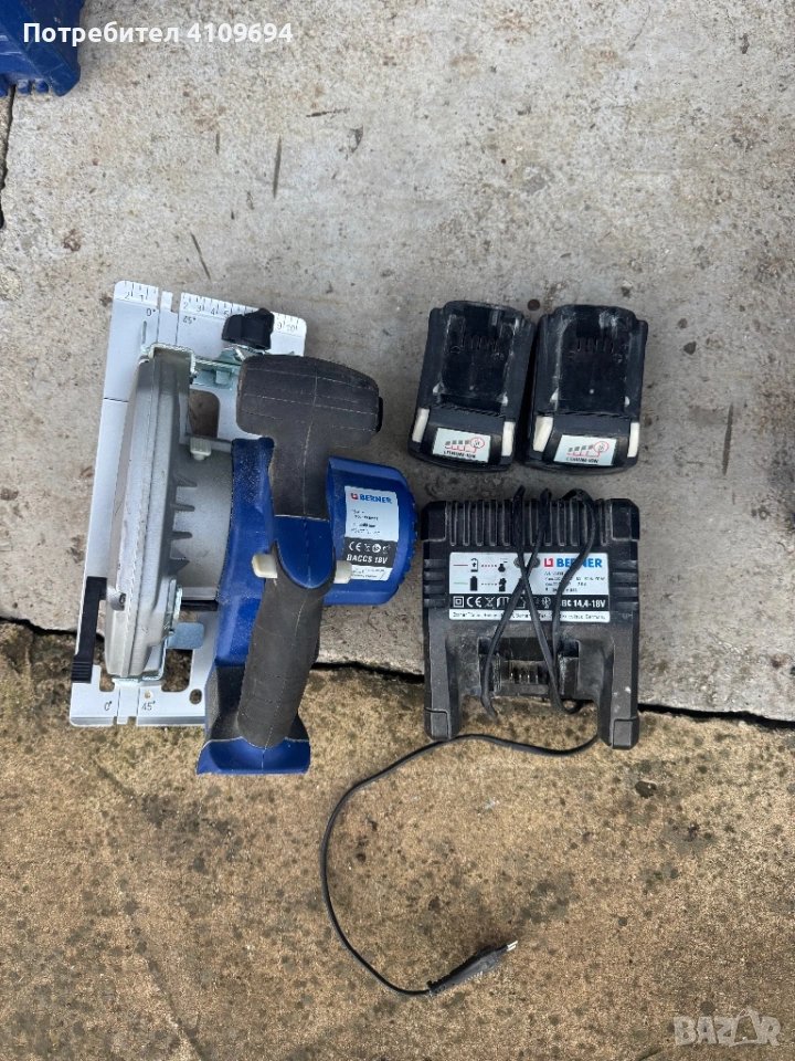 Акумураторен циркуляр Berner BACCS в перфектно състояние работи без никакви проблеми с две батерия 18V 3.0Ah и зарядно