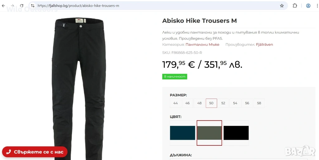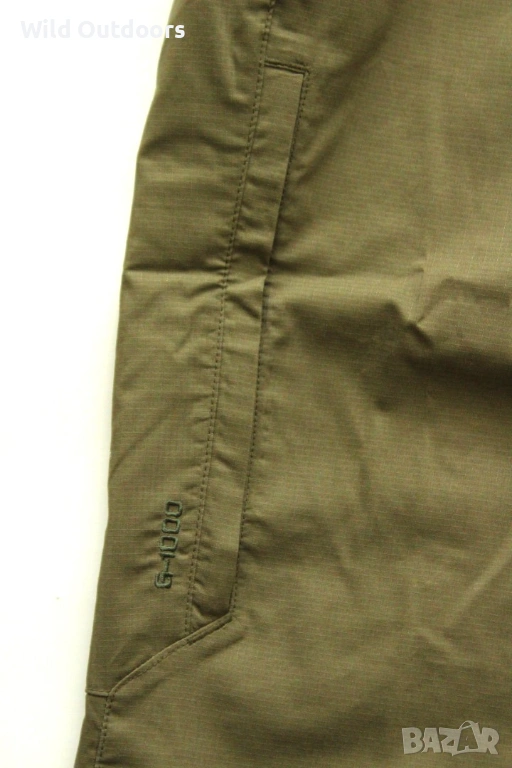 "Леки и удобни мъжки панталони, проектирани за походи и пътувания в топли климатични условия. Abisko Hike Trousers са изработени от G-1000 Air Stretch, рециклиран полиестер и органичен памук. Те имат артикулирани колена и стеснени крачоли, вградена лента за регулиране на талията и вентилационни отвори отстрани за оптимизация при походи в топло време. Три джоба с ципове и крачоли с регулиращи връзки. Сега с нов, по-добър дизайн за подобрено движение и комфорт.