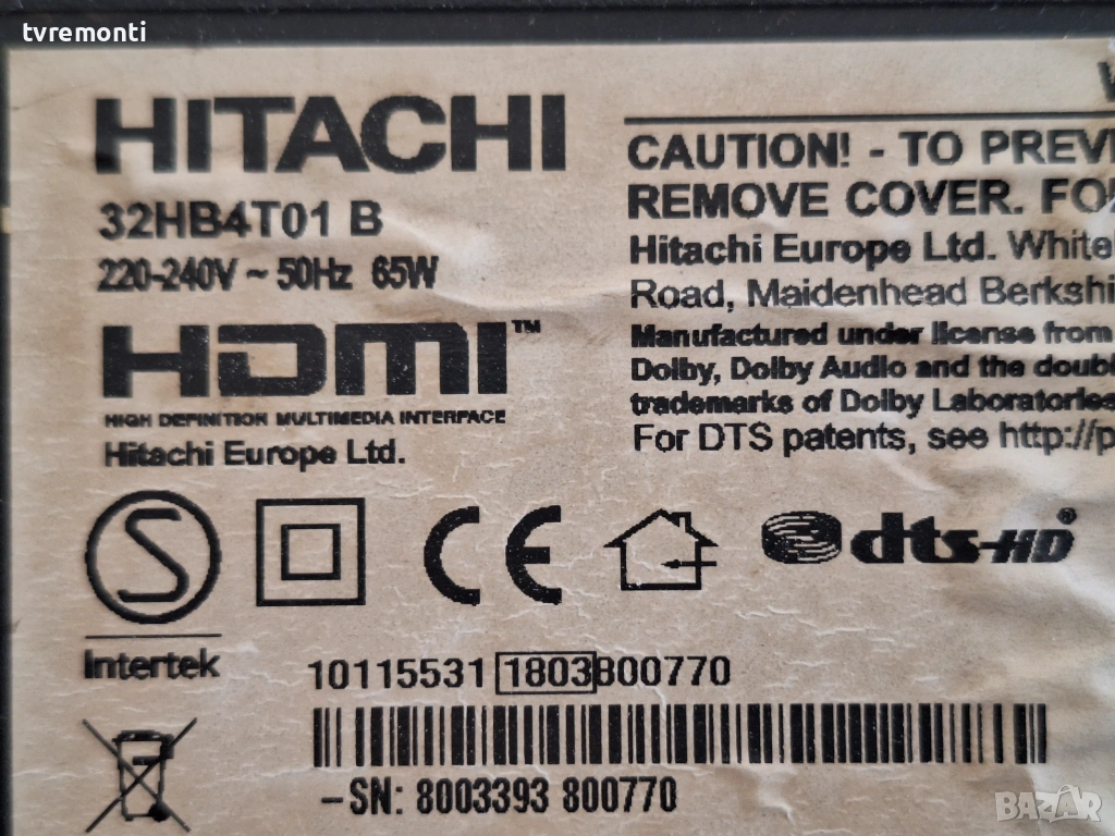 MAIN BOARD, 17MB140 for, Hitachi модел 32HB4T01 32inc DISPLAY VES315WNDS-2D-N21 борда е гарантирано работещ Демонтиран от монитор Hitachi модел 32HB4T01 със счупен дисплей VES315WNDS-2D-N21 тествана от нашия техник Ремонт на всички марки съвременни телевизори