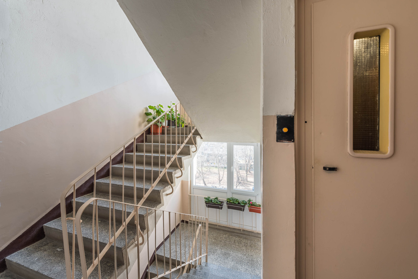 Двустайният апартамент се намира в кв. Младост бл. 115, срещу Делта Планет Мол, в осеметажна панелна сграда с асансьор и добре поддържани общи части, с контрол на достъпа. Паркира се свободно в междублоковото пространство. В непосредствена близост са още детски градини, ОУ Антон Страшимиров, Професионална гимназия по строителство и геодезия, Мебелна палата, Местни данъци и такси, медицински център, спирки на градския транспорт.