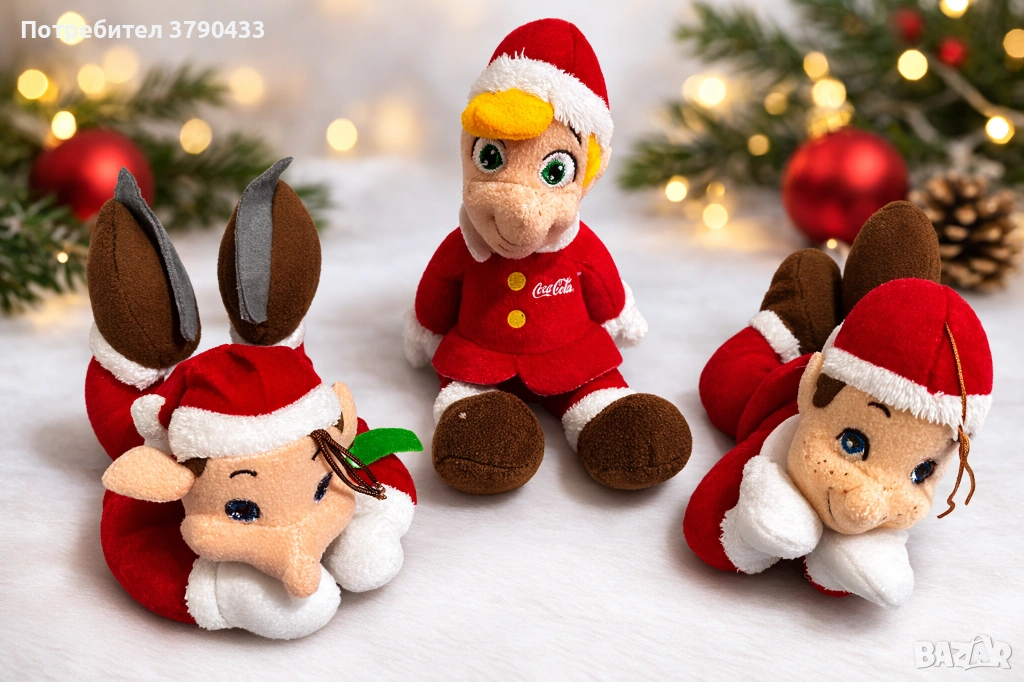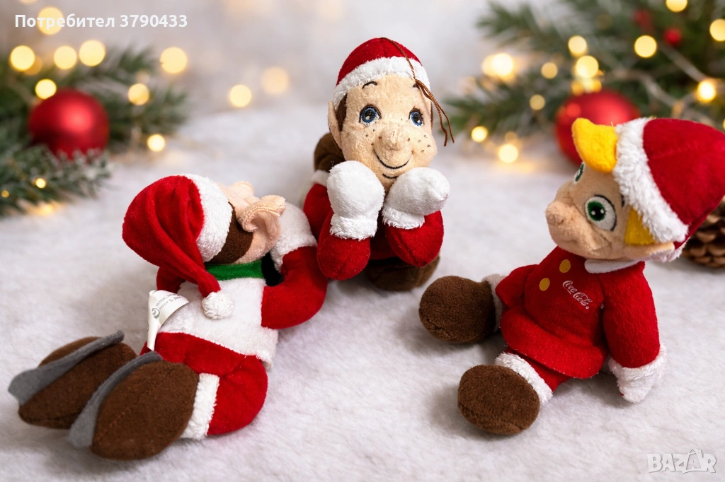 Продавам комплект от 3 плюшени коледни елфа от промоционална кампания на Coca-Cola отпреди няколко години. Играчките са оригинални и вече трудно се намират.