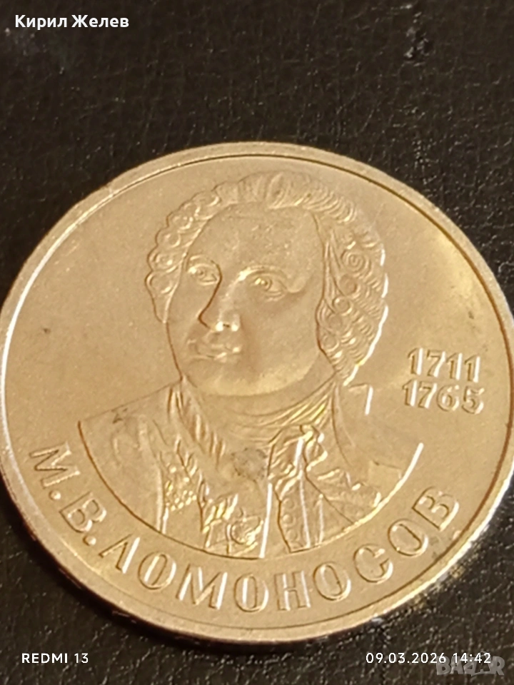 Юбилейна монета 1 рубла 1986г. СССР тема 175г. От рождението на Михаил Ломоносов 53273 → Обява 53768158