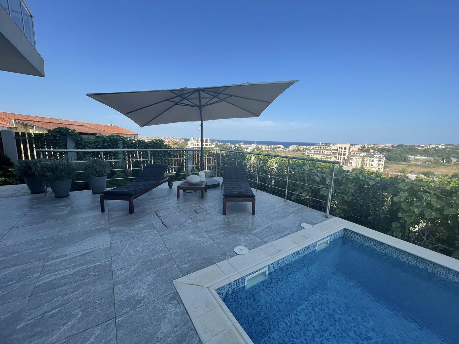 Трети етаж: стая с излаз към голяма панорамна тераса с гледка към море, с възможност за поставяне на джакузи и изграждане на барбекю.
