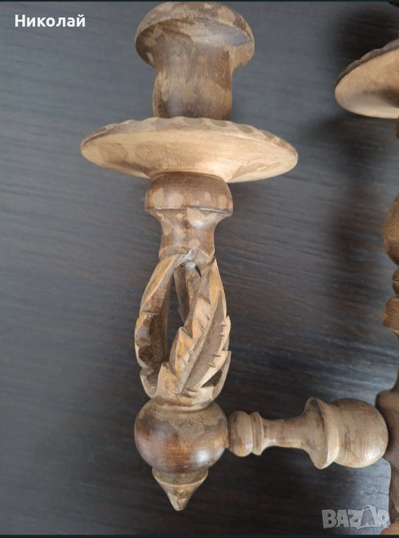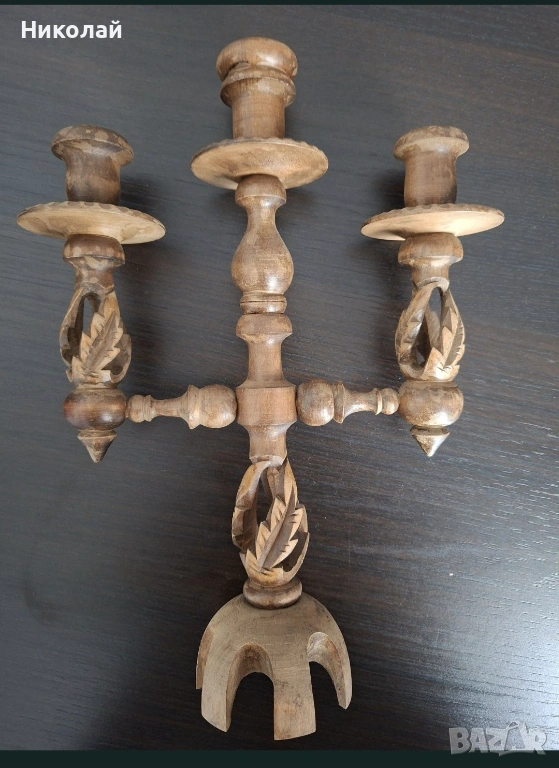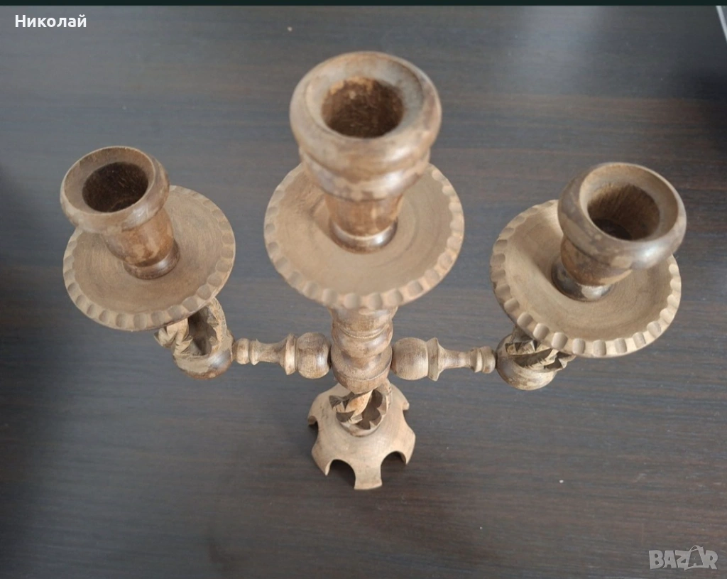Дървен резбован свещник, снимка 1 - Антикварни и старинни предмети - 53768261 Дървен резбован свещник, снимка 2 - Антикварни и старинни предмети - 53768261 Дървен резбован свещник, снимка 3 - Антикварни и старинни предмети - 53768261 1/3