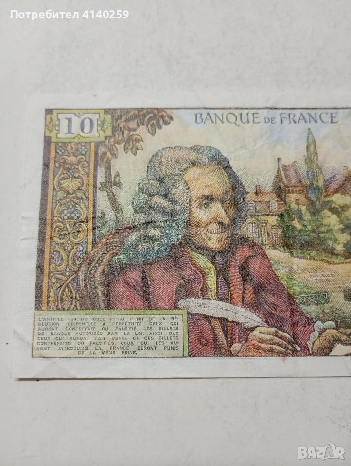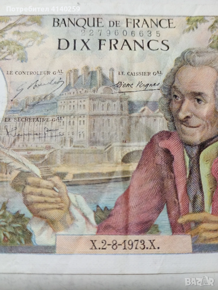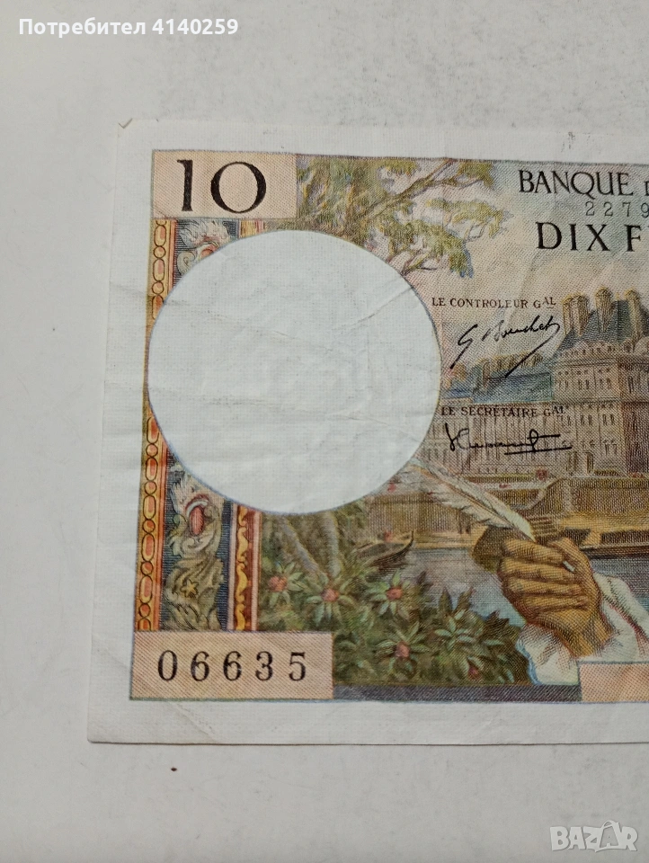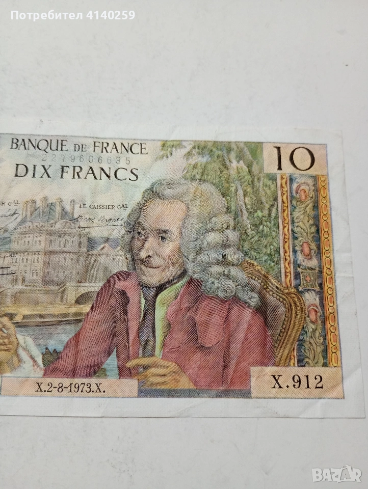 ФРАНЦИЯ БАНКНОТА 10 ФРАНКА 1973 Г СЪСТОЯНИЕ ОТЛИЧНО ПОЛУЧАВАТЕ СНИМАНАТА БАНКНОТА РАЗГЛЕДАЙТЕ ДРУГИТЕ МИ ОБЯВИ ДА КОМБИНИРАТЕ ДОСТАВКА ЕКОНТ ЗА ВАРНА ЛИЧНО