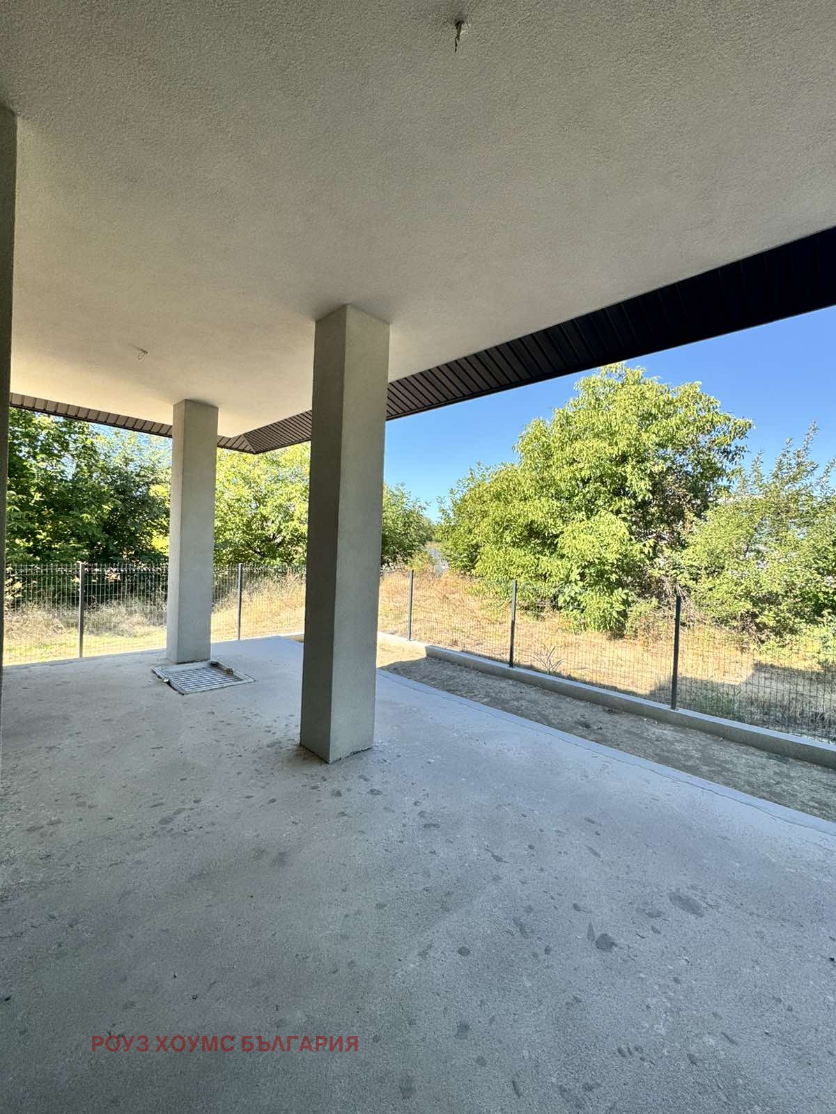 Къщата е се състои от дневна с трапезария, кухня, 4 спални, 3 бани, склад, килер, гараж с топла връзка + 80кв.м изба (извън общата квадратура)