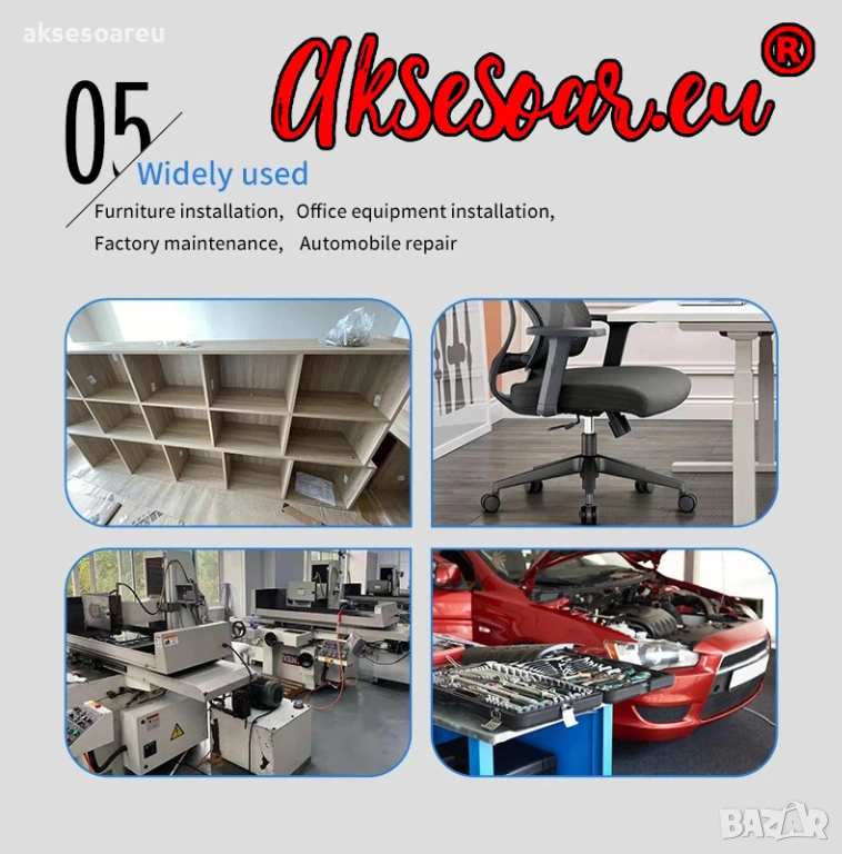 * Подходящ е за гаечни ключове и бормашини, винтоверт, дрелки,отвертки или ръчни гаечни ключове. Не е подходящ за ударни