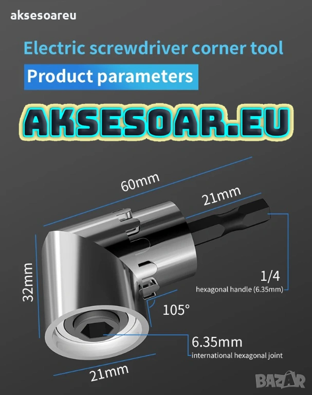 1 * Адаптер за бормашина под ъгъл 105 градуса (лесна и удобна за употреба приставка за дрелка)