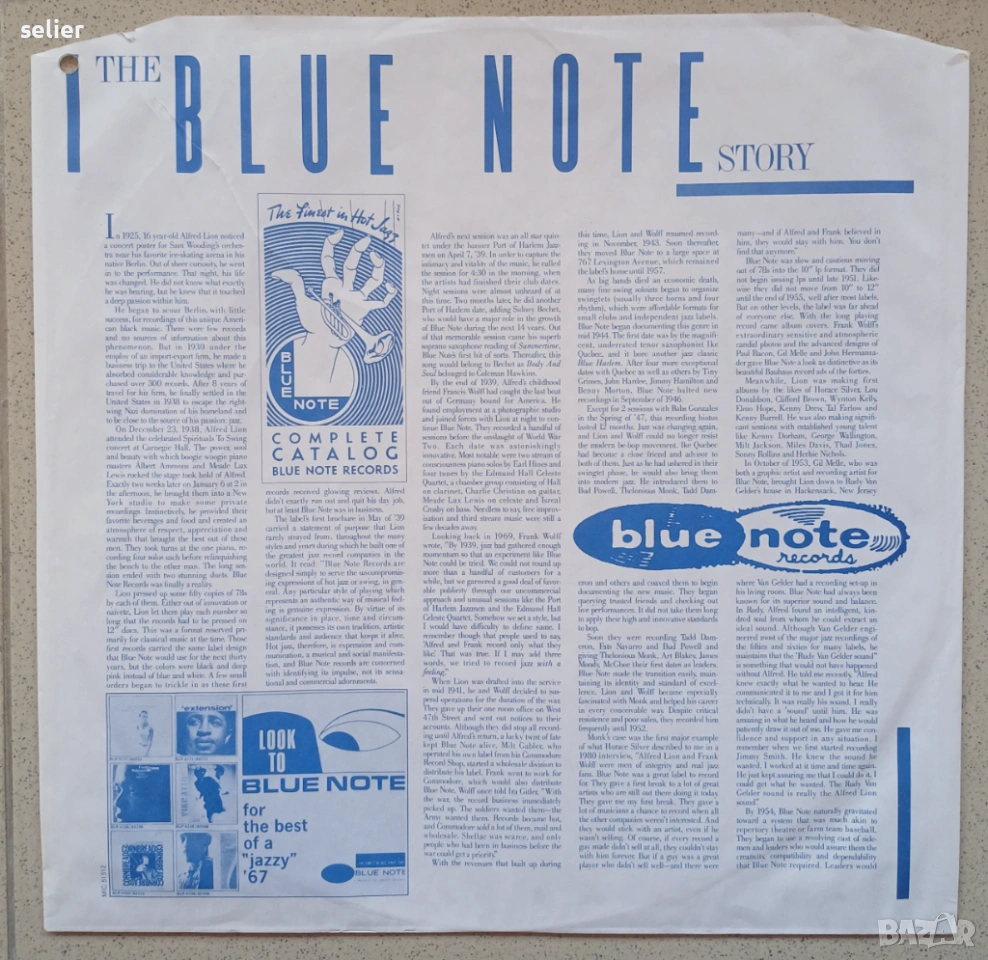 Оригинален вътрешен плик на BLUE NOTE