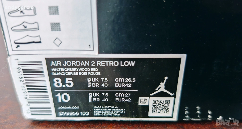 Nike Air Jordan 2 Retro Low 42.0 ти номер или 26.5 см стелка, чисто нови с кутия 100% оригинални