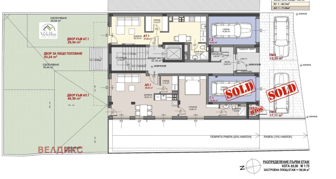 Нова, модерна сграда с ограничен достъп, находяща се на тиха улица с бърза връзка към бул. Монтевидео, на 10мин. от метростанция . Сградата е с А15, предстои да бъде въведена в експлоатация до края на 2026г.! Имотът е със статут на Ателие, състои от светло помещение, от което се излиза към собствен двор, тъмно помещение(склад), баня и тоалетна, склад. Застроена площ 37,64 кв.м., с общи части 46,74 кв.м., двор 29,54 кв.м. С малки преустройства, имотът е много подходящ за жиевеена на сам човек. Възможност да се купи и гаража, който граничи с ателието и тогава може да се получи пълноценен двустаен апартамент. Много елегантни общи части! Подземен паркинг с топла връзка.Възможност за закупуване на паркоместа на цена от 35000Е, гараж 45000Е! За контакти на тел: 0886946990.