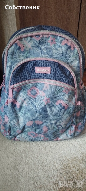 Много запазена, лека и ергономична ученическа раница. Има гумирано дъно и четири джоба. Много широка и удобна, и едновременно с това лека. Доста здрава чанта. Марка Tandem. Цена 15 Евро.