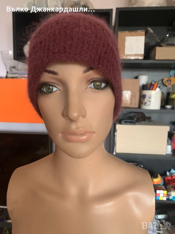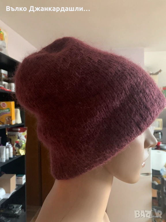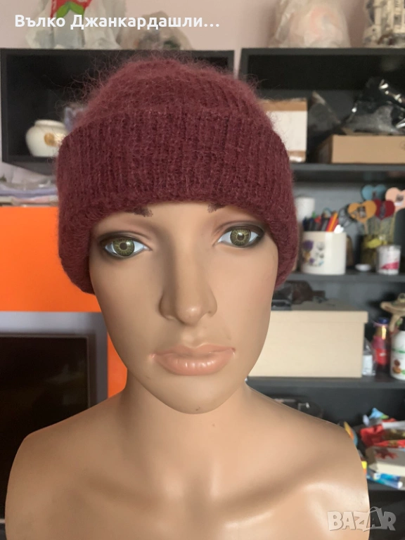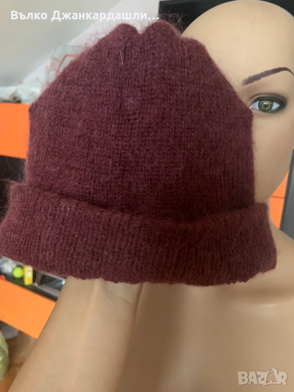 Зимна шапка в цвят бордо (състав мохер) → Обява 53768990
