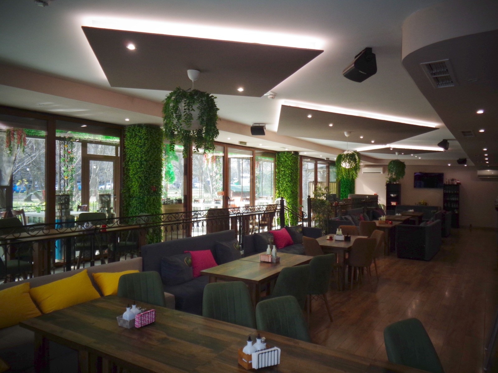 Състояние: PVC витрини, качествени подови и стенни покрития, окачени тавани с вградено осветление.