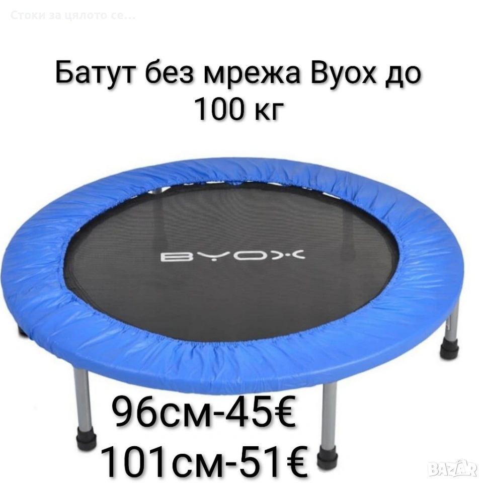 ✅️Батут без мрежа — 45€ - диаметър 96 см (38"), височина 22.5 см, 32 пружини, максимално натоварване 100 кг, тегло 7.00 кг, размери опаковка 97 x 5.5 x 97 см.